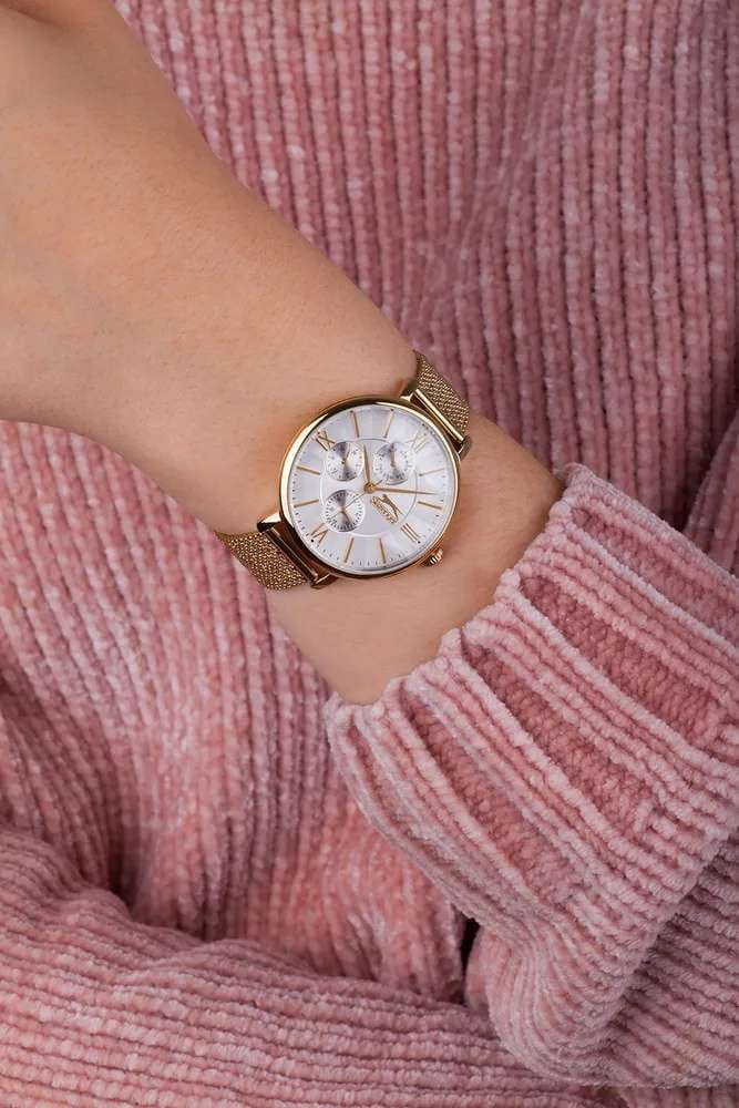 Женские элегантные наручные часы Slazenger SL.09.6543.4.02 сочетают в себе современный стиль и функциональность. Корпус выполнен из суперметалла с IP-покрытиемIP-покрытиеМетод ионного напыления. Демонстрирует повышенную устойчивость к истиранию, окислению и химическим веществам. Под воздействием высокого давления и температуры около 1500°C молекулы металла надёжно соединяются с частицами корпуса часов., придающий модели дополнительную прочность и элегантный внешний вид. Изысканный циферблат защищён минеральным стекломМинеральное стеклоМинеральное стекло представляет собой искусственно выращенный минерал кварца. Такое стекло отличается особой устойчивостью к повреждениям и царапинам. Уступает по некоторым качествам сапфировому стеклу., устойчивым к царапинам и повреждениям. Часы оснащены дополнительными циферблатами, отображающими дату, день недели и 24-часовой формат времени, что добавляет практичности в повседневном использовании. Водонепроницаемость 3 АТМ позволяет использовать часы в повседневных условиях — при мытье рук или под лёгким дождём. Браслет из суперметалла с IP-покрытиемIP-покрытиеМетод ионного напыления. Демонстрирует повышенную устойчивость к истиранию, окислению и химическим веществам. Под воздействием высокого давления и температуры около 1500°C молекулы металла надёжно соединяются с частицами корпуса часов. и с раскладным замкомРаскладной замокДанный вариант застежки используется только на часах с металлическим браслетом. Отличительная особенность такого крепления в том, что длина браслета становится универсальной и вы можете самостоятельно отрегулировать нужный вам размер – застежка просто двигается по браслету часов. обеспечивает надёжную фиксацию и комфорт при ношении. Эта модель идеально подходит для женщин, ценящих стиль, функциональность и надёжность в одном аксессуаре.