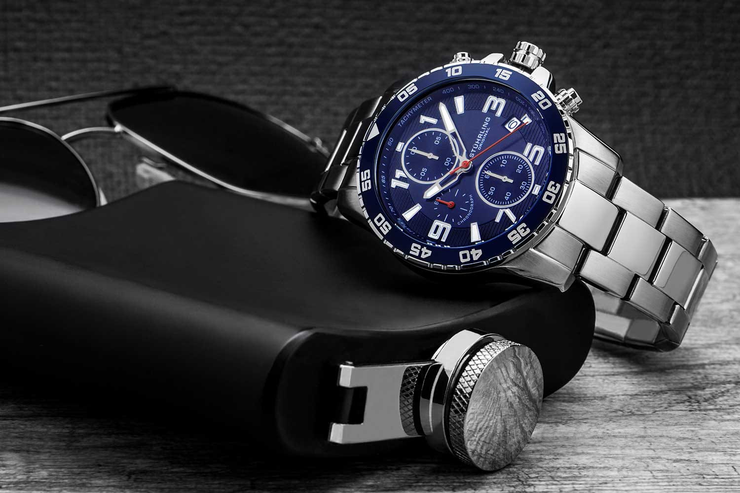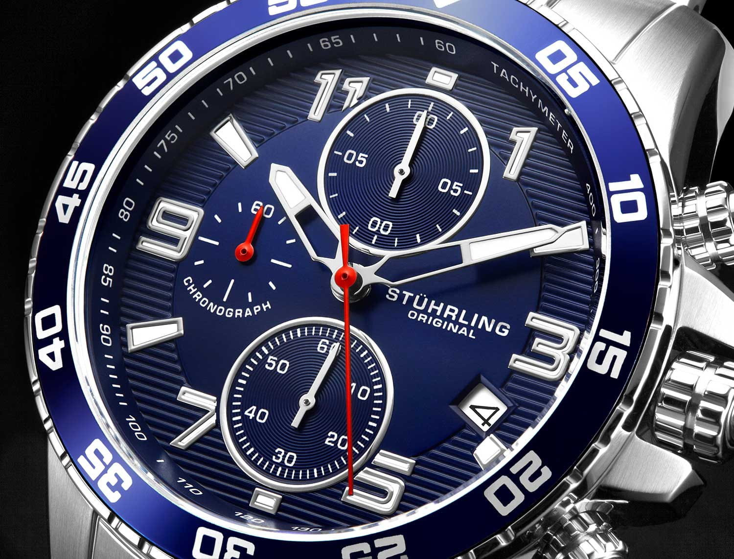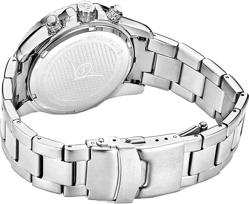 Stuhrling 3957.2 — мощные мужские часы с выразительным спортивным характером и динамичным дизайном. Корпус из нержавеющей стали гармонично сочетается с циферблатом, оформленным рельефным узором и контрастными счётчиками хронографаХронографФункция позволяет измерять отрезки времени с особой точностью: часы, минуты, секунды. Верным признаком хронографа является наличие на циферблате 3 дополнительных окошек-счётчиков.. Широкий безельБезельВнешний ободок, закрепляющий стекло. В спортивных часах так называется поворотное кольцо с делениями на циферблате, выполняет роль таймера – замеряет отрезки времени на шкале. Неподвижный безель – элемент декора. Однонаправленно вращающийся безель на дайверских часах позволяет фиксировать моменты погружения и выныривания на поверхность. с PVD-покрытиемPVDУльтратонкое покрытие наносится в технике вакуумного напыления, сочетает в себе нитрид титана особой прочности со слоем золота или оксида хрома. Несёт в себе декоративную или защитную функцию. подчёркивает брутальный стиль модели, а стрелки и метки с люминесцентным покрытиемЛюминесцентное покрытиеПозволяет считывать показания времени в темноте. Производители наносят на стрелки, часовые индексы, безель или поверхность циферблата светонакопительный состав, дающий холодное свечение. обеспечивают идеальную читаемость в любых условиях. Прочное стекло KrysternaKrysternaKrysterna — инновационное стекло для наручных часов. Благодаря уникальной структуре, Krysterna объединяет ключевые преимущества двух материалов: твердость сапфира, защищающую от царапин, и гибкость минерального стекла, обеспечивающую устойчивость к деформациям. Такая комбинация делает его идеальным решением для часов, подверженных экстремальным нагрузкам, сохраняя при этом оптическую прозрачность. устойчиво к царапинам, сохраняя прозрачность и блеск. Завершает образ стальной браслет с раскладной застёжкойРаскладная застёжкаТакой тип застёжки используется только на браслетах из металла. Она никогда не раскрывается полностью, происходит разделение на 2 и более частей. Раскладывающая застёжка снизит вероятность потери часов к минимуму., гарантирующий комфорт и надёжную фиксацию. Stuhrling — стильная и функциональная модель для уверенных мужчин, ценящих точность и энергию в каждой детали.
