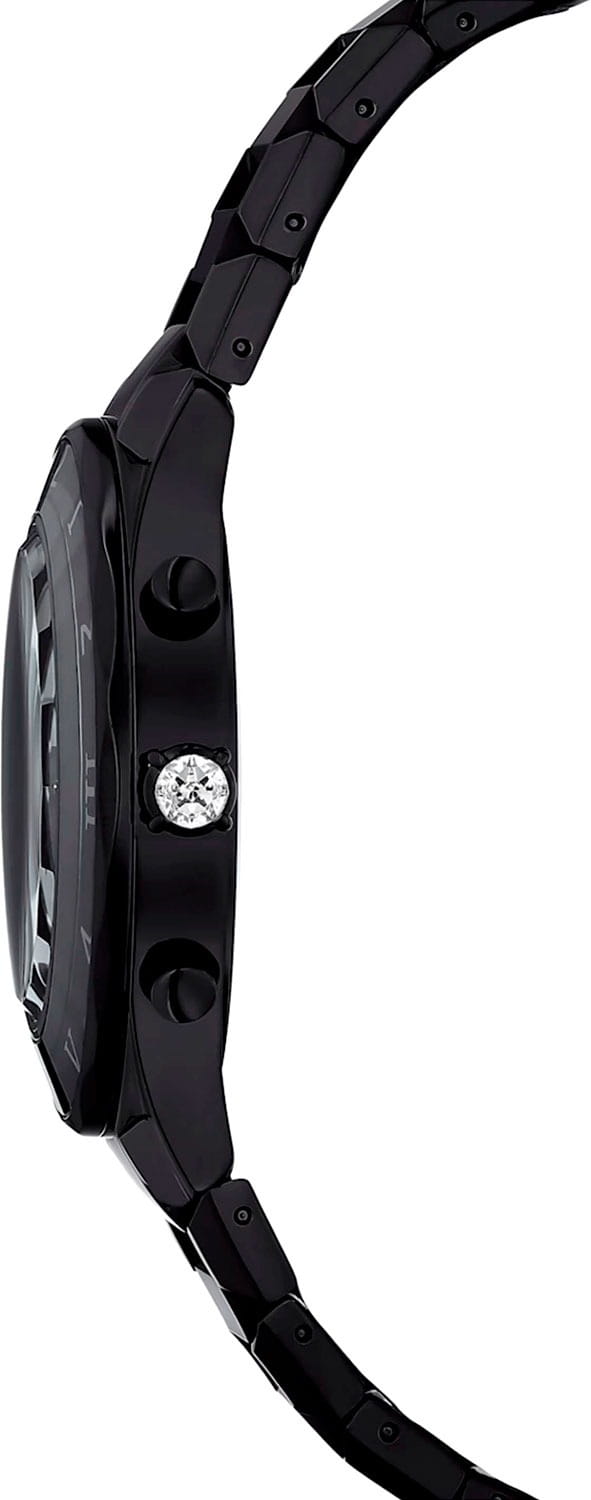Часы Swarovski 5641393 представляют собой гармоничное сочетание современного стиля и функциональности, идеально подходящее для тех, кто ценит элегантные аксессуары. Эти швейцарские кварцевые часы с хронографомХронографФункция позволяет измерять отрезки времени с особой точностью: часы, минуты, секунды. Верным признаком хронографа является наличие на циферблате 3 дополнительных окошек-счётчиков. и секундомеромСекундомерСекундоме́р — прибор, способный измерять интервалы времени с точностью до долей секунды. заключены в прочный стальной корпус с черным PVDPVDУльтратонкое покрытие наносится в технике вакуумного напыления, сочетает в себе нитрид титана особой прочности со слоем золота или оксида хрома. Несёт в себе декоративную или защитную функцию. покрытием. Черный циферблат, украшенный кристаллами Swarovski и метками в виде штрихов, придает часам изысканный вид и подчеркивает их утонченность. Ограненный кристальный безельБезельВнешний ободок, закрепляющий стекло. В спортивных часах так называется поворотное кольцо с делениями на циферблате, выполняет роль таймера – замеряет отрезки времени на шкале. Неподвижный безель – элемент декора. Однонаправленно вращающийся безель на дайверских часах позволяет фиксировать моменты погружения и выныривания на поверхность. черного с римскими и арабскими цифрами добавляет оригинальности и делает часы не только стильными, но и удобными для считывания времени. Минеральное стеклоМинеральное стеклоМинеральное стекло представляет собой искусственно выращенный минерал кварца. Такое стекло отличается особой устойчивостью к повреждениям и царапинам. Уступает по некоторым качествам сапфировому стеклу. обеспечивает надежную защиту циферблата, а водозащита 50 WR позволяет не беспокоиться о случайных контактах с водой в повседневной жизни. Стальной браслет с черным PVDPVDУльтратонкое покрытие наносится в технике вакуумного напыления, сочетает в себе нитрид титана особой прочности со слоем золота или оксида хрома. Несёт в себе декоративную или защитную функцию. покрытием и застежкой «бабочка»Застёжка "бабочка"Такой вид застёжки дополняется предохранителями, помогающими избежать случайного раскрытия браслета. Обладают изящным исполнением. обеспечивает комфортное ношение и надежную фиксацию на запястье. Заводная головка, украшенная кристаллом круглой огранки, придает дополнительную изящность и завершенность общему виду. С диаметром корпуса 39 мм и длиной браслета 16 см, эти часы станут идеальным аксессуаром для тех, кто ценит качество, стиль и функциональность в одном изделии.