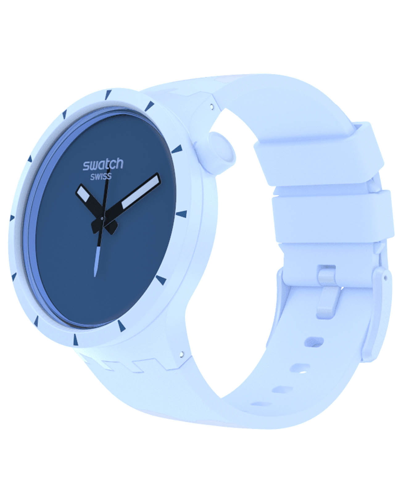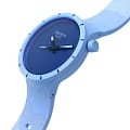 Часы Swatch SB03N102 — это стильный и современный аксессуар для тех, кто ценит лёгкость и комфорт. Часы идеально подойдут как для мужчин, так и для женщин. Корпус из биокерамикиБиокерамикаБиокерамика — это материал, который на две трети состоит из керамики, на одну треть — из биопластика. Он сочетает в себе лучшие качества обоих материалов и обладает прочностью и шелковистой на ощупь текстурой., а ремешок — из однотонного матово-синего силикона. Темно-синий циферблат подчеркивает белые акценты на темных стрелках. Секундная стрелка, прообразом которой стала стрелка компаса, усиливает дух приключений. На часовую и минутную стрелки нанесено люминесцентное покрытиеЛюминесцентное покрытиеПозволяет считывать показания времени в темноте. Производители наносят на стрелки, часовые индексы, безель или поверхность циферблата светонакопительный состав, дающий холодное свечение., которое светится в темноте, создавая необычное изображение. Водозащита 30 метров делает часы практичными для повседневного использования. Эти часы подойдут для повседневного ношения и станут ярким акцентом в вашем наряде.