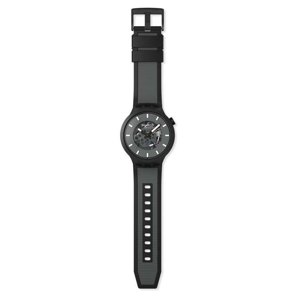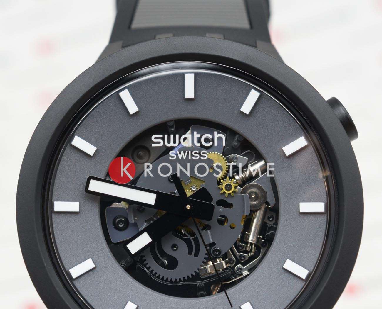 Часы Swatch SB05B113 — это стильный и современный аксессуар для тех, кто ценит лёгкость и комфорт. Часы идеально подойдут как для мужчин, так и для женщин. Эти часы большого размера отличаются темно-серым открытым циферблатом, 3D-индексами с белым принтом, светящимися в темноте черными часовой и минутной стрелками благодаря  люминесцентному покрытиюЛюминесцентное покрытиеПозволяет считывать показания времени в темноте. Производители наносят на стрелки, часовые индексы, безель или поверхность циферблата светонакопительный состав, дающий холодное свечение., черной секундной стрелкой и темно-серыми элементами часового механизма, покрытого стеклом из биоматериала. Матовый чёрный корпус из биоматериала тон-в-тон дополняется матовым чёрным ремешком с темно-серой текстурой, матово-чёрными тренчиками и матово-чёрной пряжкой-половинкой. Водозащита 30 метров делает часы практичными для повседневного использования. Эти часы подойдут для повседневного ношения и станут ярким акцентом в вашем наряде.