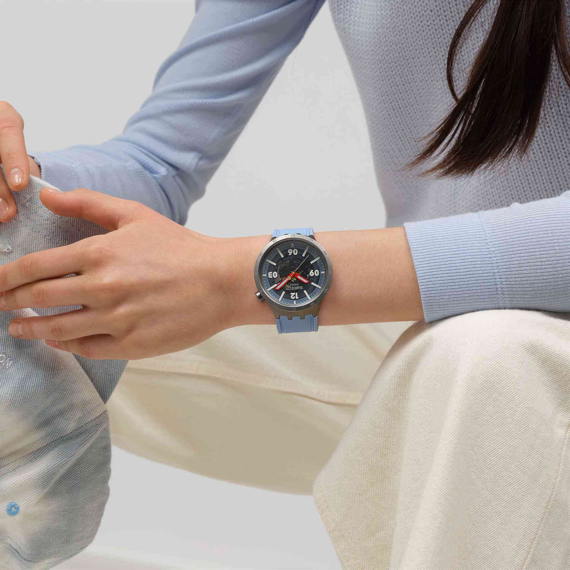 Мужские наручные часы Swatch BIG BOLD MOMENT SB07S122 — это стильный и современный аксессуар для тех, кто ценит лёгкость и комфорт. Корпус выполнен из нержавеющей стали серебристого цвета, диаметром 47 мм и толщиной 13.3 мм, что обеспечивает долговечность и утончённый внешний вид. Циферблат защищён минеральным стекломМинеральное стеклоМинеральное стекло представляет собой искусственно выращенный минерал кварца. Такое стекло отличается особой устойчивостью к повреждениям и царапинам. Уступает по некоторым качествам сапфировому стеклу., устойчивым к повреждениям. Модель оснащена кварцевым механизмом, обеспечивающим высокую точность хода. Стрелки и метки с люминесцентным покрытиемЛюминесцентное покрытиеПозволяет считывать показания времени в темноте. Производители наносят на стрелки, часовые индексы, безель или поверхность циферблата светонакопительный состав, дающий холодное свечение.. Силиконовый ремешок на стандартной застёжке гармонично дополняет корпус и обеспечивает комфортное ношение. Водозащита 30 метров делает часы практичными для повседневного использования. Эти часы подойдут для повседневного ношения и станут ярким акцентом в вашем наряде.