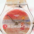Часы Swatch SO28Z700  —  эффектный и надежный аксессуар. Эти часы из коллекции Swatch x Tate Gallery обладают прозрачным глянцево-розовым корпусом и стеклом из биоматериала. Циферблат и матово-розовый ремешок украшены принтом с репродукцией картины Тёрнера (JMW Turner) «Алый закат» («The Scarlet Sunset»). Время отсчитывают серебристые стрелки с люминесцентным покрытиемЛюминесцентное покрытиеПозволяет считывать показания времени в темноте. Производители наносят на стрелки, часовые индексы, безель или поверхность циферблата светонакопительный состав, дающий холодное свечение., которые светятся в темноте, а солнце на циферблате меняет цвет в течение дня благодаря разноцветному календарному колесу. На прозрачном матовом ремешке расположен логотип Tate Gallery. Ремешок из силикона на стандартной застёжке. Внутри часов установлен надежный кварцевый механизм, который обеспечивает точность хода. Эти часы водонепроницаемы до 30 метров, что позволяет не беспокоиться о случайных брызгах или дождевых каплях. Swatch SO28Z700  — это идеальный выбор для тех, кто ценит сочетание стиля, комфорта и функциональности в одном аксессуаре.
