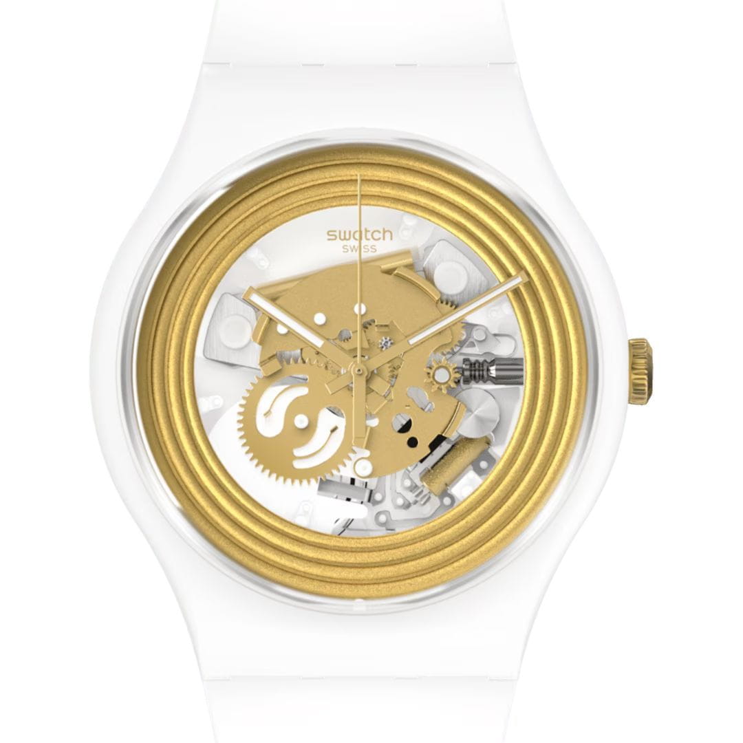 Часы Swatch SO29W107 —  эффектный и удобный аксессуар. Современный взгляд на классику. Часы имеют белый корпус из биоматериала и золотистое оформление прозрачного циферблата, в котором можно наблюдать механизм часов. Ремешок из силикона на стандартной застёжке. Внутри часов установлен надежный кварцевый механизм, который обеспечивает точность хода. Эти часы водонепроницаемы до 30 метров, что позволяет не беспокоиться о случайных брызгах или дождевых каплях. Swatch SO29W107 — это идеальный выбор для тех, кто ценит сочетание стиля, комфорта и функциональности в одном аксессуаре.