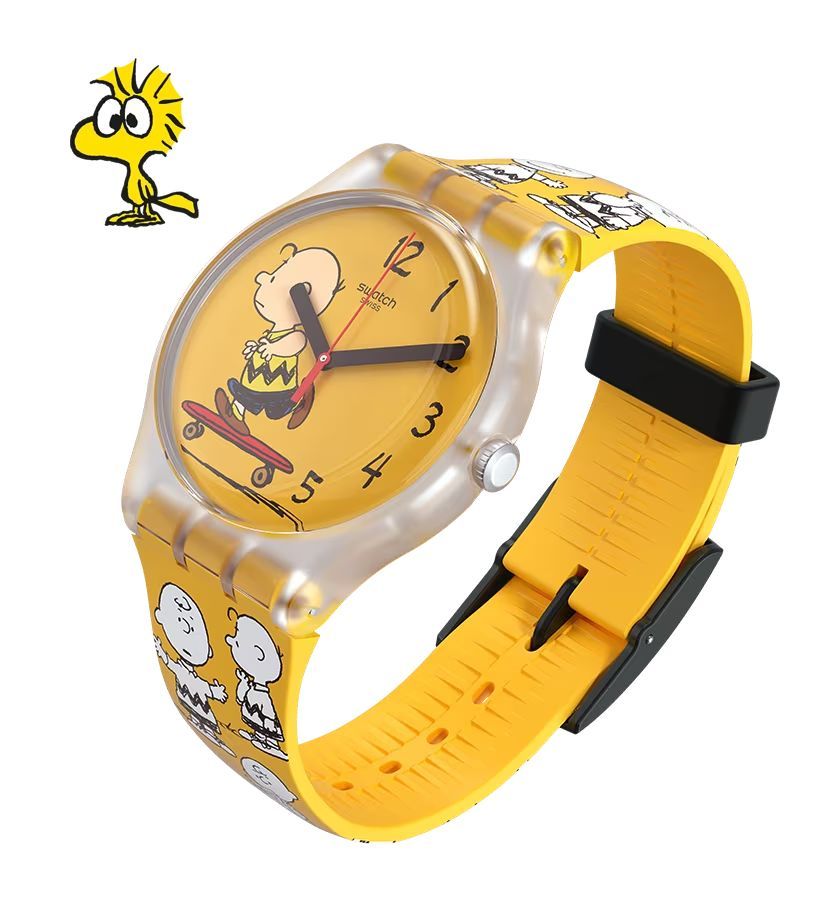 Часы Swatch SO29Z101 — стильный и надежный аксессуар. Эти позитивные часы имеют прозрачный корпус из биоматериала, желтый силиконовый ремешок, черные стрелки и индексы, принт на всей поверхности Swatch X Peanuts. Циферблат покрыт биостеклом. Мерцающий блеск модели обусловлен особым методом гравированной отделки. Ремешок на классической застежке. Внутри часов установлен надежный кварцевый механизм, который обеспечивает точность хода. Эти часы водонепроницаемы до 30 метров, что позволяет не беспокоиться о случайных брызгах или дождевых каплях. Swatch SO29Z101 — это идеальный выбор для тех, кто ценит сочетание стиля, комфорта и функциональности в одном аксессуаре.