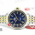 Стрелки и часовые метки покрыты люминесцентным составомЛюминесцентное покрытиеПозволяет считывать показания времени в темноте. Производители наносят на стрелки, часовые индексы, безель или поверхность циферблата светонакопительный состав, дающий холодное свечение., что позволяет легко считывать время даже в условиях низкой освещённости. Модель оснащена швейцарским кварцевым механизмом, который обеспечивает высокую точность хода. БезельБезельВнешний ободок, закрепляющий стекло. В спортивных часах так называется поворотное кольцо с делениями на циферблате, выполняет роль таймера – замеряет отрезки времени на шкале. Неподвижный безель – элемент декора. Однонаправленно вращающийся безель на дайверских часах позволяет фиксировать моменты погружения и выныривания на поверхность. с PVD-покрытиемPVDУльтратонкое покрытие наносится в технике вакуумного напыления, сочетает в себе нитрид титана особой прочности со слоем золота или оксида хрома. Несёт в себе декоративную или защитную функцию..