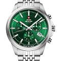 Часы Swiss Military SM34107.04 — это хронограф, сочетающий стиль и функциональность. Корпус диаметром 40 мм выполнен из нержавеющей стали, что обеспечивает долговечность и надёжность. Циферблат с солнечным узором украшен белыми люминесцентными индексамиЛюминесцентное покрытиеПозволяет считывать показания времени в темноте. Производители наносят на стрелки, часовые индексы, безель или поверхность циферблата светонакопительный состав, дающий холодное свечение. и стрелками, что позволяет легко считывать время в любых условиях. Защиту циферблата обеспечивает сапфировое стеклоСапфировое стеклоПрочный и надёжный материал из кристалла сапфира синтетического происхождения, характеризующийся особой твёрдостью и устойчивостью к царапинам и повреждениям., устойчивое к царапинам. Водозащита до 10 ATM делает часы подходящими для плавания и других водных активностей. Швейцарский кварцевый механизм обеспечивает высокую точность измерения времени и функции хронографа. Стальной браслет на раскладной застёжкеРаскладная застёжкаТакой тип застёжки используется только на браслетах из металла. Она никогда не раскрывается полностью, происходит разделение на 2 и более частей. Раскладывающая застёжка снизит вероятность потери часов к минимуму. гарантирует комфортное ношение и надёжную фиксацию. Часы сопровождаются 5-летней международной гарантией, подтверждающей их высокое качество и надёжность. Swiss Military — это идеальный выбор для мужчин, которые ценят швейцарское качество и ведут активный образ жизни.