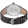 Мужские швейцарские часы Swiss Military Hanowa SMWGA2100404 с надёжным кварцевым механизмом. Сапфировое стеклоСапфировое стеклоПрочный и надёжный материал из кристалла сапфира синтетического происхождения, характеризующийся особой твёрдостью и устойчивостью к царапинам и повреждениям. устойчивое к мелким механическим повреждениям. Корпус часов изготовлен из нержавеющей стали. Кожаный браслет на стандартной застёжке. Стрелки и метки с люминесцентным покрытиемЛюминесцентное покрытиеПозволяет считывать показания времени в темноте. Производители наносят на стрелки, часовые индексы, безель или поверхность циферблата светонакопительный состав, дающий холодное свечение.. Окошко даты находится в положении 3 часа. Класс водозащиты: 100 метров, позволит плавать, нырять и заниматься другими водными видами спорта.