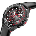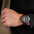 Мужские швейцарские часы- хронографХронографФункция позволяет измерять отрезки времени с особой точностью: часы, минуты, секунды. Верным признаком хронографа является наличие на циферблате 3 дополнительных окошек-счётчиков. с секундомеромСекундомерСекундоме́р — прибор, способный измерять интервалы времени с точностью до долей секунды. Swiss Military Hanowa Stone Marten SMWGC0001832, кварцевый механизм с высокой точностью. Сапфировое стеклоСапфировое стеклоПрочный и надёжный материал из кристалла сапфира синтетического происхождения, характеризующийся особой твёрдостью и устойчивостью к царапинам и повреждениям. устойчивое к появлению царапин, обладающее высокой прозрачностью. Корпус часов изготовлен из нержавеющей стали с IP-покрытиемIP-покрытиеМетод ионного напыления. Демонстрирует повышенную устойчивость к истиранию, окислению и химическим веществам. Под воздействием высокого давления и температуры около 1500°C молекулы металла надёжно соединяются с частицами корпуса часов.. Неподвижный безельБезельВнешний ободок, закрепляющий стекло. В спортивных часах так называется поворотное кольцо с делениями на циферблате, выполняет роль таймера – замеряет отрезки времени на шкале. Неподвижный безель – элемент декора. Однонаправленно вращающийся безель на дайверских часах позволяет фиксировать моменты погружения и выныривания на поверхность. из стали с IP-покрытиемIP-покрытиеМетод ионного напыления. Демонстрирует повышенную устойчивость к истиранию, окислению и химическим веществам. Под воздействием высокого давления и температуры около 1500°C молекулы металла надёжно соединяются с частицами корпуса часов. и шкалой тахиметрТахиметрРазмеченная шкала, располагается на ободке или безеле часов. Тахиметр позволяет рассчитать скорость на определённом участке пути, расстояние измеряется в километрах или милях.. Стрелки и метки с люминесцентным покрытиемЛюминесцентное покрытиеПозволяет считывать показания времени в темноте. Производители наносят на стрелки, часовые индексы, безель или поверхность циферблата светонакопительный состав, дающий холодное свечение.. Класс водозащиты: 100 метров, позволит плавать, нырять и заниматься другими водными видами спорта. Кожаный ремешок на стандартной застежке.