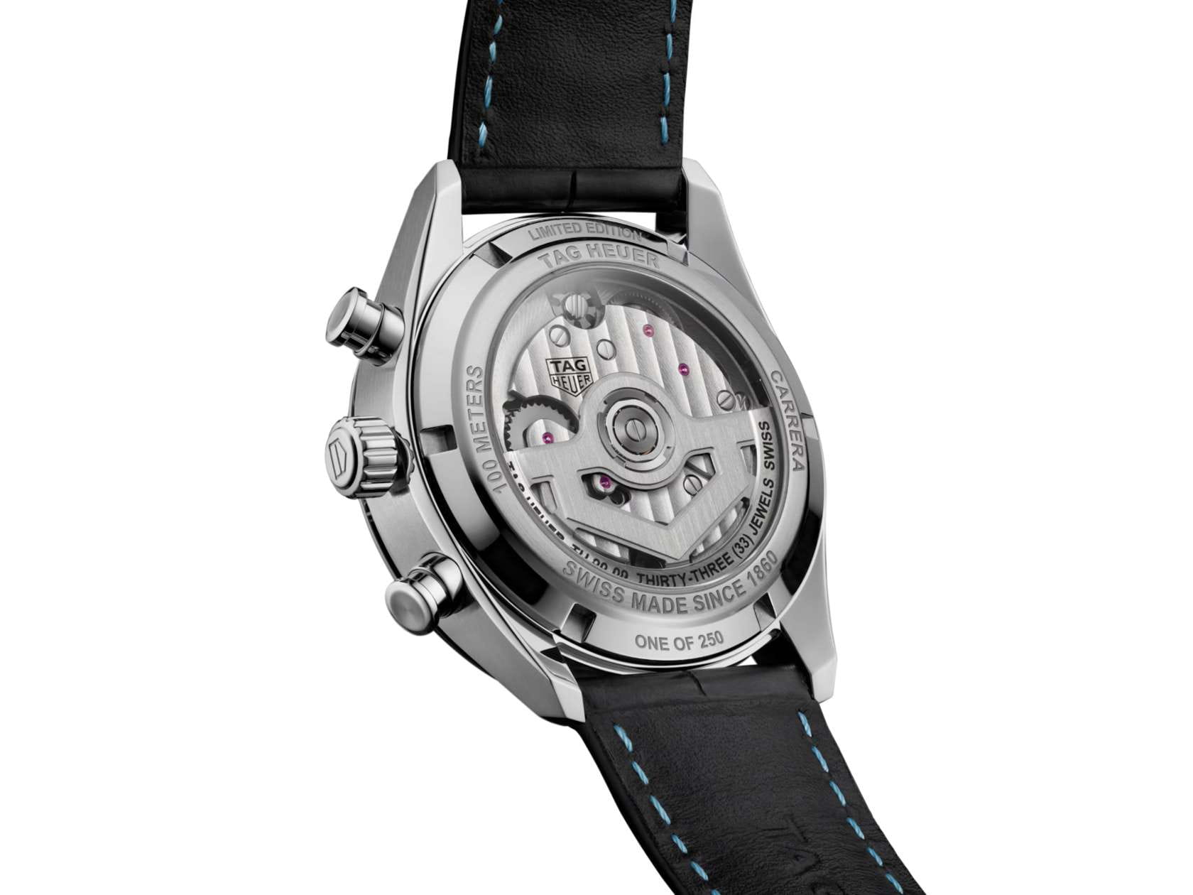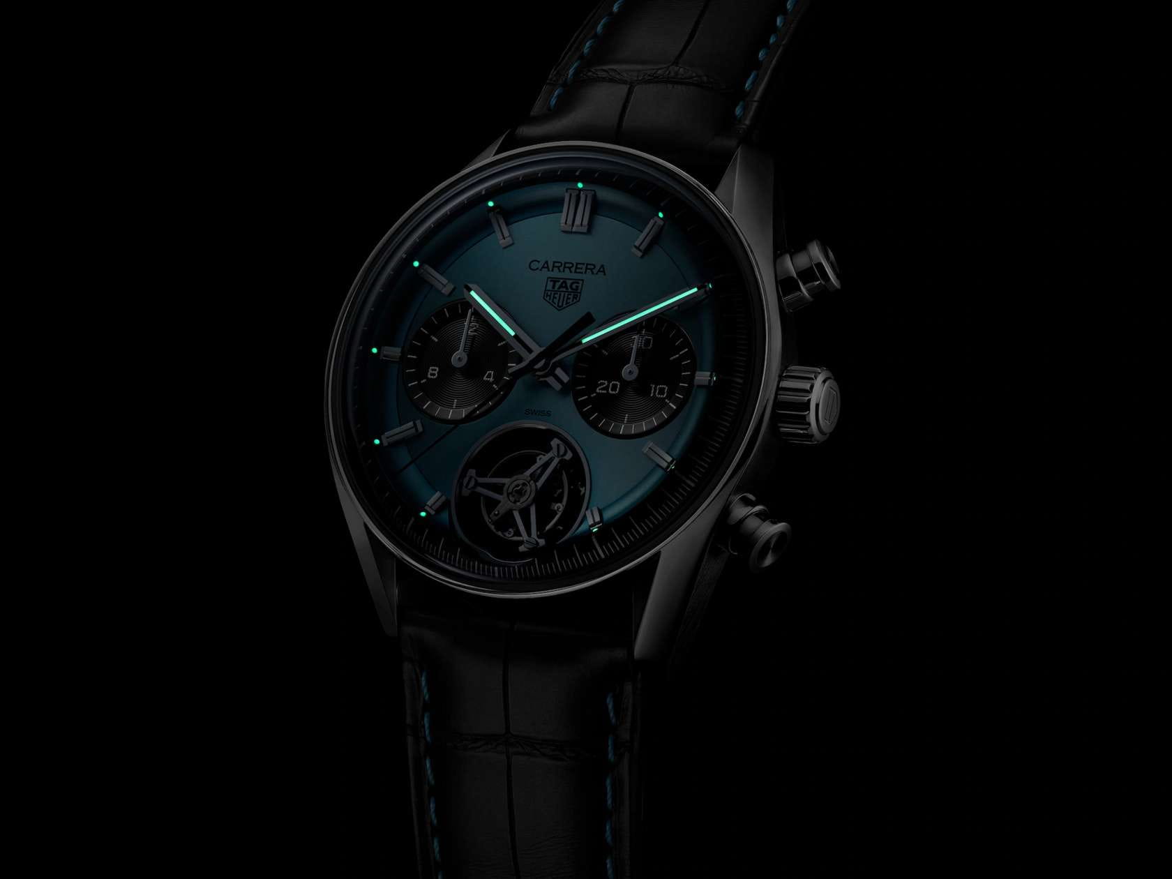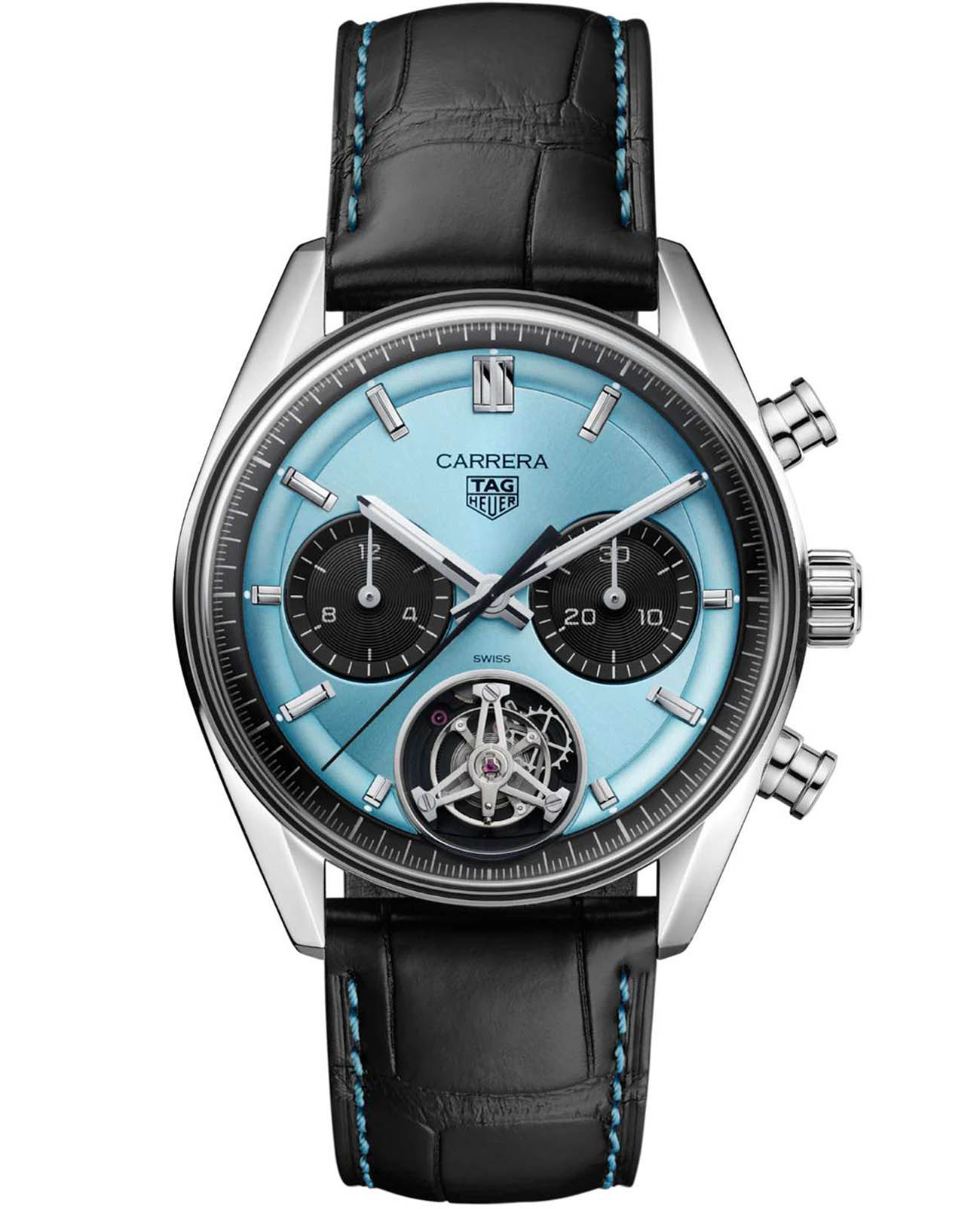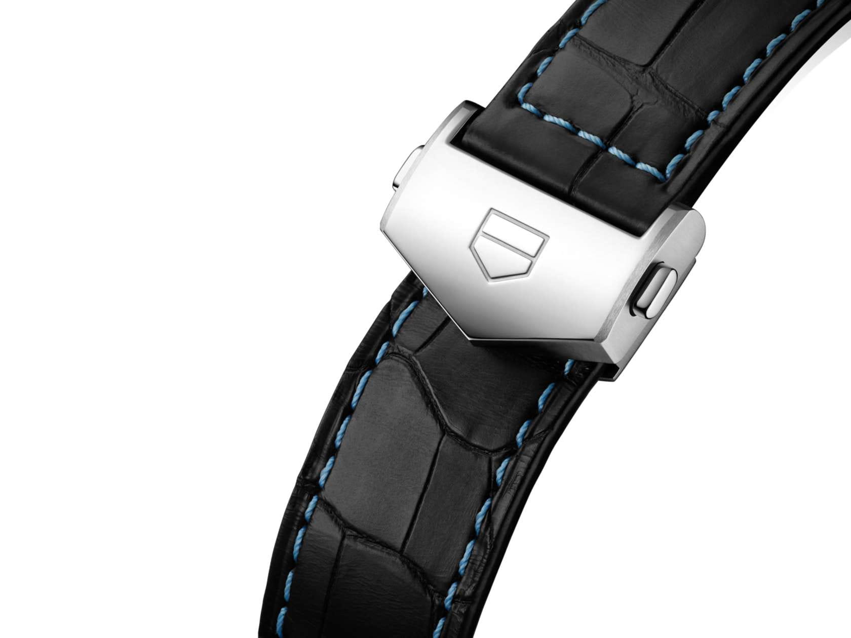 Часы TAG Heuer Carrera Chronograph Tourbillon CBS5014.FC6573. Эта потрясающая версия поднимает классическую модель Carrera на новые высоты. Часы оснащены мануфактурным механизмом TAG Heuer TH20-09. Фирменный дизайн циферблата придает часам эффектность, в то время как сапфировое стеклоСапфировое стеклоПрочный и надёжный материал из кристалла сапфира синтетического происхождения, характеризующийся особой твёрдостью и устойчивостью к царапинам и повреждениям. с выпуклой поверхностью обеспечивает сверхточную разборчивость.Часы-хронографХронографФункция позволяет измерять отрезки времени с особой точностью: часы, минуты, секунды. Верным признаком хронографа является наличие на циферблате 3 дополнительных окошек-счётчиков.. Механический механизм (автоматический калибр) с высокой точностью. Класс водозащиты: 100 метров, позволит плавать, нырять и заниматься другими водными видами спорта. Часы с люминесцентным покрытиемЛюминесцентное покрытиеПозволяет считывать показания времени в темноте. Производители наносят на стрелки, часовые индексы, безель или поверхность циферблата светонакопительный состав, дающий холодное свечение. Super-LumiNova. Корпус часов изготовлен из нержавеющей стали. Кожаный ремешок с раскладной застёжкойРаскладная застёжкаТакой тип застёжки используется только на браслетах из металла. Она никогда не раскрывается полностью, происходит разделение на 2 и более частей. Раскладывающая застёжка снизит вероятность потери часов к минимуму.. В комплекте с черным ремешком из кожи аллигатора, украшенным синей строчкой, эта модель выпускается ограниченным тиражом.