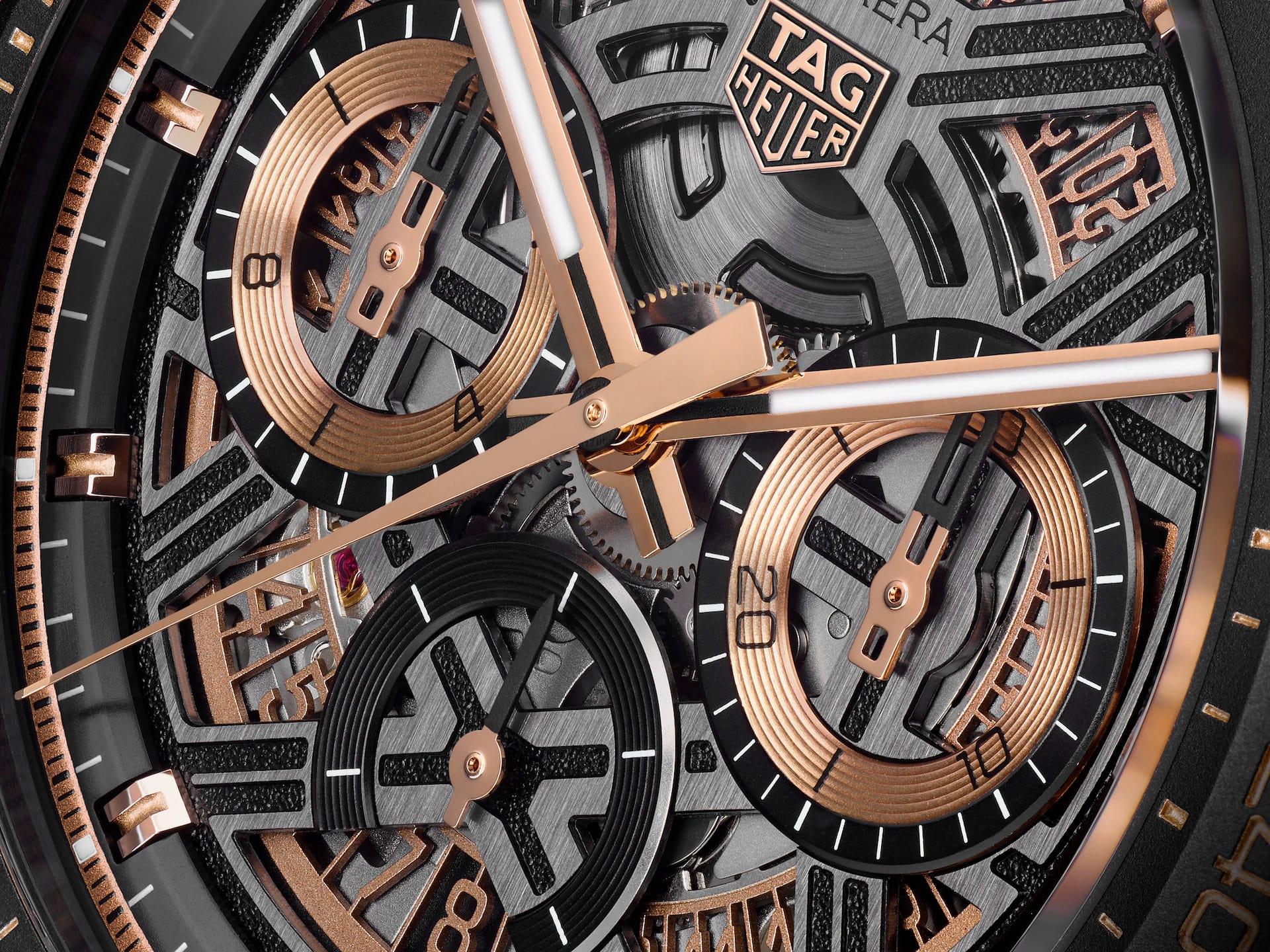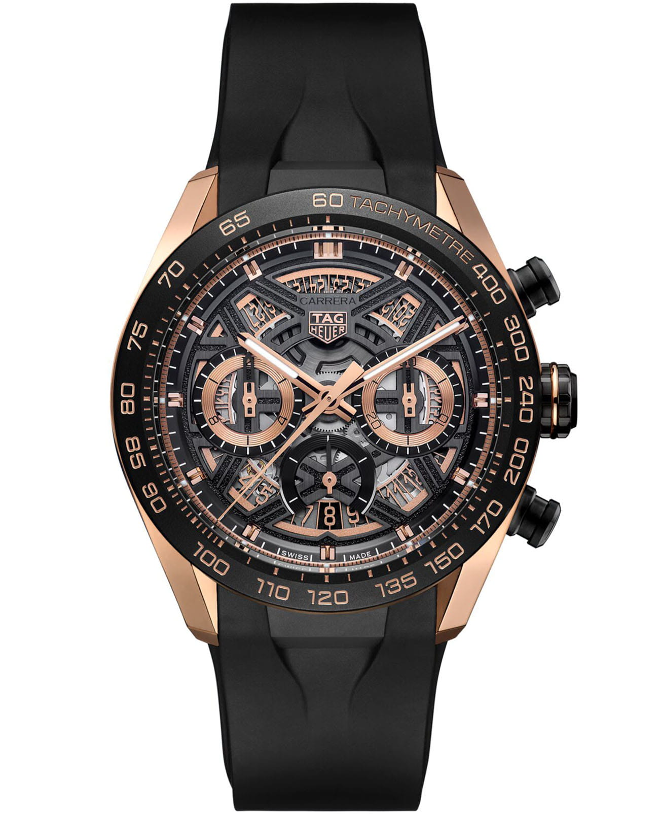 Испытайте острые ощущения от соревновательных гонок с хронографом TAG Heuer Carrera Chronograph Extreme Sport CBU2050.FT6273, Изысканный скелетон, скелетонизированный циферблат с кольцами и стрелками,18-каратное золото18-каратное золотоОбозначение по каратной системе пробирования, оно показывает, сколько драгоценного металла содержится в изделии. 18 карат - в составе 75% чистого золота, соответствует 750 пробе.
