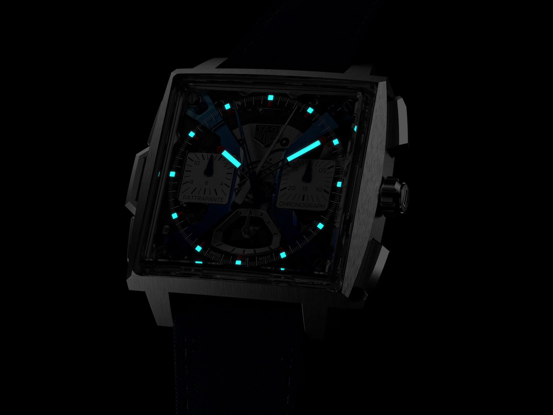 Мужские наручные часы-хронографХронографФункция позволяет измерять отрезки времени с особой точностью: часы, минуты, секунды. Верным признаком хронографа является наличие на циферблате 3 дополнительных окошек-счётчиков. TAG Heuer Monaco Split-seconds Chronograph CBW2182.FC8339. Корпус изготовлен из титана. Стрелки с люминесцентным покрытиемЛюминесцентное покрытиеПозволяет считывать показания времени в темноте. Производители наносят на стрелки, часовые индексы, безель или поверхность циферблата светонакопительный состав, дающий холодное свечение. и накладные часовые метки позволяют точно определять время. Циферблат защищает выпуклое сапфировое стеклоСапфировое стеклоПрочный и надёжный материал из кристалла сапфира синтетического происхождения, характеризующийся особой твёрдостью и устойчивостью к царапинам и повреждениям. со скошенной кромкой. Стальной корпус диаметром 39 мм с прозрачной задней крышкой гарантирует водонепроницаемость на глубине 100 метров. Тканевый ремешок.