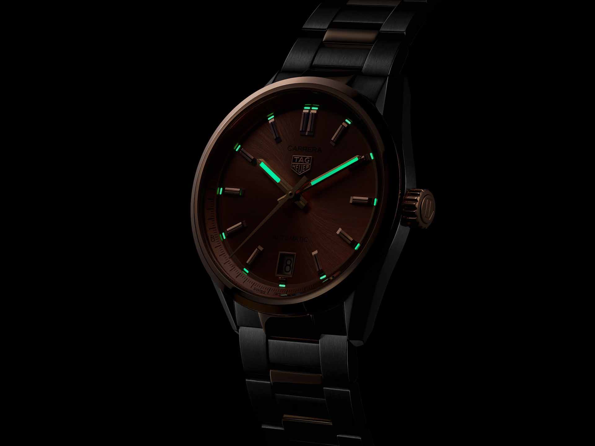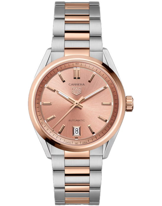 Утончённые часы TAG Heuer Carrera Date WBN2350.BD0000 созданы для стильных и смелых женщин. Механический механизм (автоматический калибр) с высокой точностью производится целиком в стенах компании. Сапфировое стеклоСапфировое стеклоПрочный и надёжный материал из кристалла сапфира синтетического происхождения, характеризующийся особой твёрдостью и устойчивостью к царапинам и повреждениям. устойчивое к появлению царапин, обладающее высокой прозрачностью. На стрелки и метки нанесено люминесцентное покрытиеЛюминесцентное покрытиеПозволяет считывать показания времени в темноте. Производители наносят на стрелки, часовые индексы, безель или поверхность циферблата светонакопительный состав, дающий холодное свечение.. Класс водозащиты: 50 метров, позволит защитить корпус от случайных брызг или капель дождя. Браслет с раскладной застёжкойРаскладная застёжкаТакой тип застёжки используется только на браслетах из металла. Она никогда не раскрывается полностью, происходит разделение на 2 и более частей. Раскладывающая застёжка снизит вероятность потери часов к минимуму.. Апертура даты находится на отметке 6 часов.