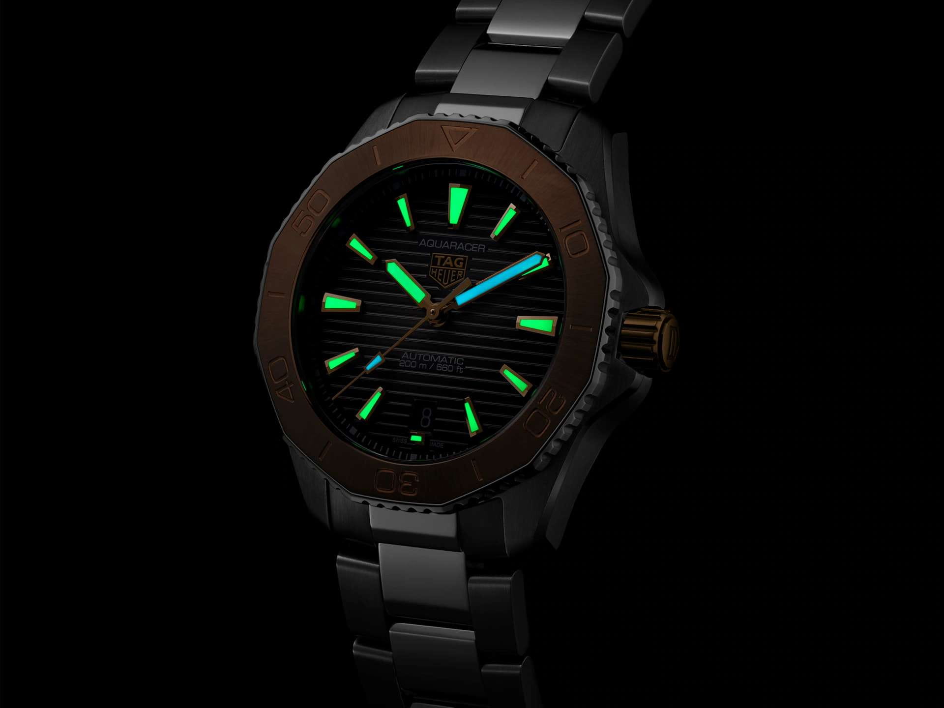 TAG Heuer Aquaracer Professional 200 Date WBP2151.BA0627 — это стильный мужской аксессуар, который сочетает элегантный дизайн и практичность. Высокая функциональность в нем сочетается с изысканной элегантностью, в то время как сапфировое стеклоСапфировое стеклоПрочный и надёжный материал из кристалла сапфира синтетического происхождения, характеризующийся особой твёрдостью и устойчивостью к царапинам и повреждениям. обеспечивает сверхточную разборчивость. Эти часы с Calibre 5 отражают смелый подход к измерению времени. Класс водозащиты: 200 метров, позволит плавать, нырять и заниматься другими водными видами спорта. Часы с люминесцентным покрытиемЛюминесцентное покрытиеПозволяет считывать показания времени в темноте. Производители наносят на стрелки, часовые индексы, безель или поверхность циферблата светонакопительный состав, дающий холодное свечение.. Дымчато-черный циферблат отличается элегантностью, которую подчеркивают контрастные стрелки и метки, покрытые розовым золотом. Корпус часов изготовлен из стали, безельБезельВнешний ободок, закрепляющий стекло. В спортивных часах так называется поворотное кольцо с делениями на циферблате, выполняет роль таймера – замеряет отрезки времени на шкале. Неподвижный безель – элемент декора. Однонаправленно вращающийся безель на дайверских часах позволяет фиксировать моменты погружения и выныривания на поверхность. из стали с 18-каратным золотом18-каратное золотоОбозначение по каратной системе пробирования, оно показывает, сколько драгоценного металла содержится в изделии. 18 карат - в составе 75% чистого золота, соответствует 750 пробе.
