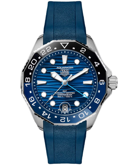 TAG Heuer Aquaracer созданные для погружения и серфинга по всему миру благодаря своей экстремальной технической конструкции и калибру GMT. Благодаря свежему и спортивному стилю он станет отличным аксессуаром. Прочный 42-миллиметровый корпус с водонепроницаемостью 300 м и прочным сине-белым керамическим безелем выдержит любые условия. Благодаря автоматическому калибру 7 GMT, которым оснащены часы TAG Heuer Aquaracer, отслеживание времени по всему миру никогда не было таким простым.Часы оснащены желтой стрелкой GMT, которая делает один полный оборот в день, следуя 24-часовой шкале, видимой на двунаправленном безеле GMT, что позволяет вам определять второй часовой пояс на вашем запястье. Безель представлен в двух цветах, чтобы отличать день от ночи: половина темно-синего цвета, чтобы соответствовать циферблату и представлять ночные часы с 6 вечера до 6 утра; и половина ярко-белого цвета, чтобы обозначить дневные часы с 6 утра до 6 вечера. Механический механизм с автоподзаводом. Сапфировое стеклоСапфировое стеклоПрочный и надёжный материал из кристалла сапфира синтетического происхождения, характеризующийся особой твёрдостью и устойчивостью к царапинам и повреждениям. устойчивое к появлению царапин, обладающее высокой прозрачностью. Стрелки с люминесцентным покрытиемЛюминесцентное покрытиеПозволяет считывать показания времени в темноте. Производители наносят на стрелки, часовые индексы, безель или поверхность циферблата светонакопительный состав, дающий холодное свечение.. Вращающийся безельБезельВнешний ободок, закрепляющий стекло. В спортивных часах так называется поворотное кольцо с делениями на циферблате, выполняет роль таймера – замеряет отрезки времени на шкале. Неподвижный безель – элемент декора. Однонаправленно вращающийся безель на дайверских часах позволяет фиксировать моменты погружения и выныривания на поверхность. из керамики. Класс водозащиты: 300 метров, позволит плавать, нырять и заниматься другими водными видами спорта. Корпус часов изготовлен из стали. Браслет с раскладной застёжкойРаскладная застёжкаТакой тип застёжки используется только на браслетах из металла. Она никогда не раскрывается полностью, происходит разделение на 2 и более частей. Раскладывающая застёжка снизит вероятность потери часов к минимуму..