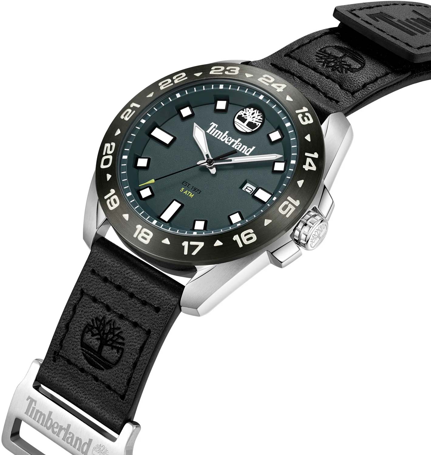 Мужские часы Timberland Carrigan TDWGB0029402, кварцевый механизм с высокой точностью. Класс водозащиты: 50 метров, позволит защитить корпус от случайных брызг или капель дождя. БезельБезельВнешний ободок, закрепляющий стекло. В спортивных часах так называется поворотное кольцо с делениями на циферблате, выполняет роль таймера – замеряет отрезки времени на шкале. Неподвижный безель – элемент декора. Однонаправленно вращающийся безель на дайверских часах позволяет фиксировать моменты погружения и выныривания на поверхность. изготовлен из нержавеющей стали с PVD-покрытиемPVDУльтратонкое покрытие наносится в технике вакуумного напыления, сочетает в себе нитрид титана особой прочности со слоем золота или оксида хрома. Несёт в себе декоративную или защитную функцию.. Окошко даты находится в положении 3 часа. Стрелки и метки с люминесцентным покрытиемЛюминесцентное покрытиеПозволяет считывать показания времени в темноте. Производители наносят на стрелки, часовые индексы, безель или поверхность циферблата светонакопительный состав, дающий холодное свечение..