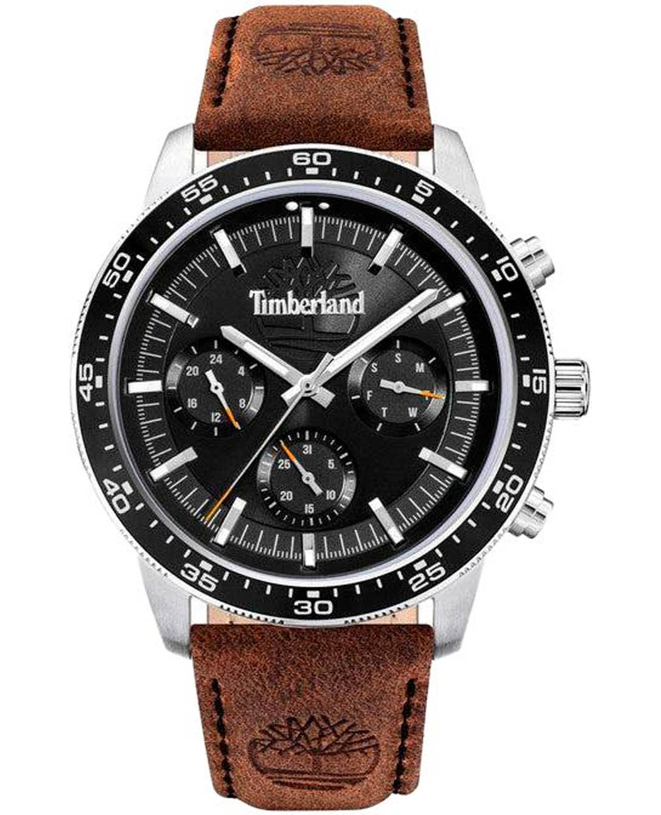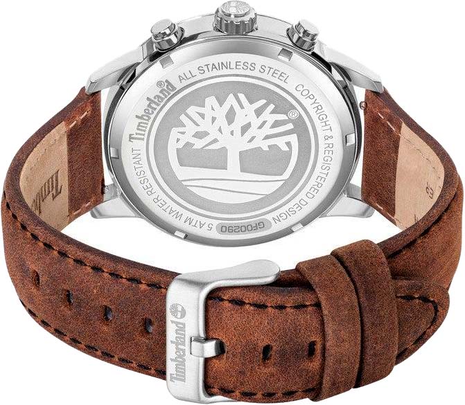 Американские мужские часы Timberland Parkman TDWGF0029002 имеют кварцевый механизм с высокой точностью. Класс водозащиты: 50 метров, позволит защитить корпус от случайных брызг или капель дождя. Корпус часов изготовлен из стали. Прочное минеральное стеклоМинеральное стеклоМинеральное стекло представляет собой искусственно выращенный минерал кварца. Такое стекло отличается особой устойчивостью к повреждениям и царапинам. Уступает по некоторым качествам сапфировому стеклу.. Стрелки c люминесцентным покрытиемЛюминесцентное покрытиеПозволяет считывать показания времени в темноте. Производители наносят на стрелки, часовые индексы, безель или поверхность циферблата светонакопительный состав, дающий холодное свечение.. БезельБезельВнешний ободок, закрепляющий стекло. В спортивных часах так называется поворотное кольцо с делениями на циферблате, выполняет роль таймера – замеряет отрезки времени на шкале. Неподвижный безель – элемент декора. Однонаправленно вращающийся безель на дайверских часах позволяет фиксировать моменты погружения и выныривания на поверхность. из алюминия с PVD-покрытиемPVDУльтратонкое покрытие наносится в технике вакуумного напыления, сочетает в себе нитрид титана особой прочности со слоем золота или оксида хрома. Несёт в себе декоративную или защитную функцию.. Кожаный ремешок на стандартной застежке.