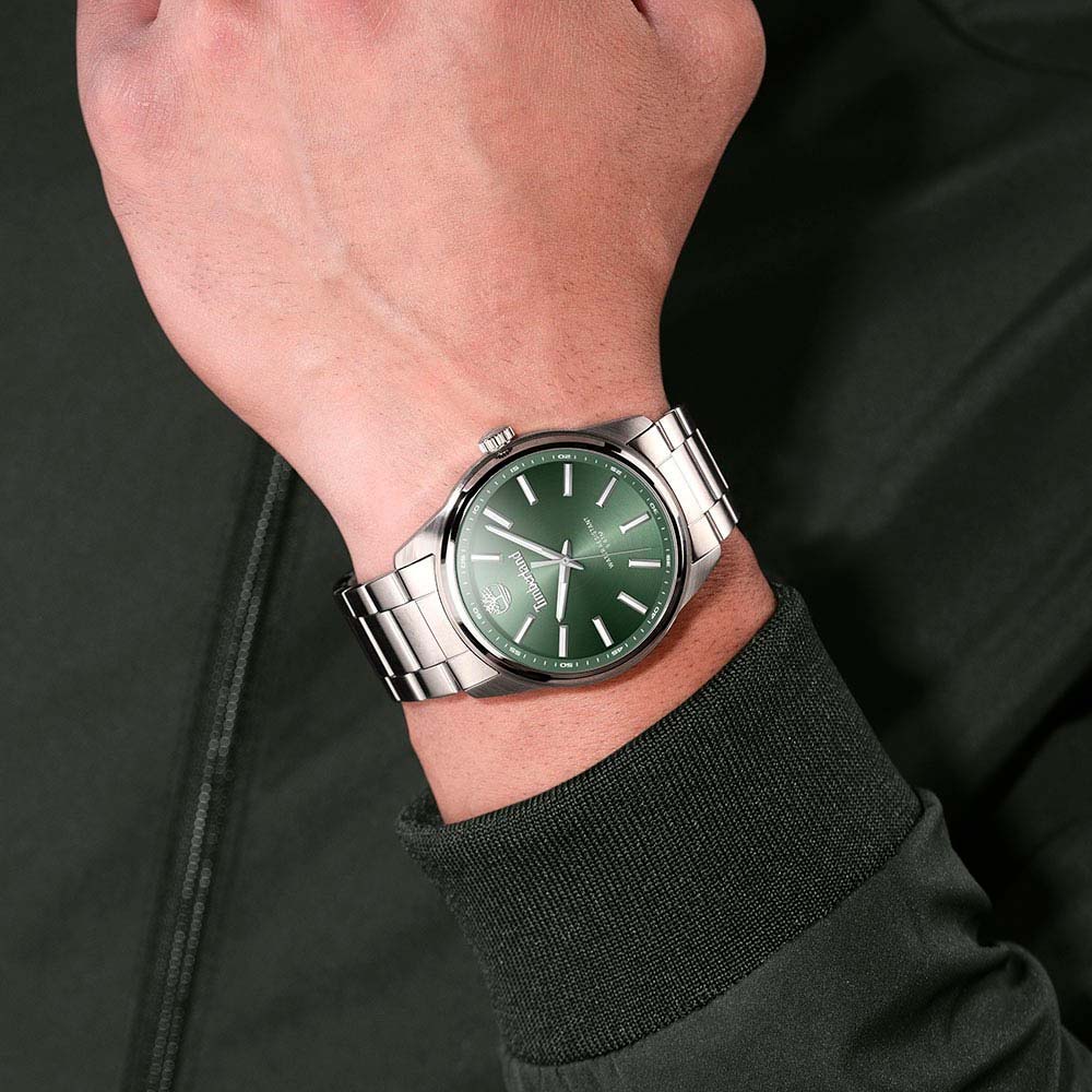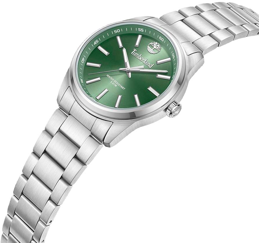 Американские мужские часы Timberland Northbridge TDWGG0030002 имеют кварцевый механизм с высокой точностью. Класс водозащиты: 50 метров, позволит защитить корпус от случайных брызг или капель дождя. Корпус часов изготовлен из стали. Прочное минеральное стеклоМинеральное стеклоМинеральное стекло представляет собой искусственно выращенный минерал кварца. Такое стекло отличается особой устойчивостью к повреждениям и царапинам. Уступает по некоторым качествам сапфировому стеклу.. Стрелки c люминесцентным покрытиемЛюминесцентное покрытиеПозволяет считывать показания времени в темноте. Производители наносят на стрелки, часовые индексы, безель или поверхность циферблата светонакопительный состав, дающий холодное свечение.. Стальной браслет на раскладной застёжкеРаскладная застёжкаТакой тип застёжки используется только на браслетах из металла. Она никогда не раскрывается полностью, происходит разделение на 2 и более частей. Раскладывающая застёжка снизит вероятность потери часов к минимуму..