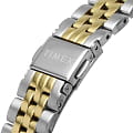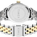 Часы Timex TW2V31600 из коллекции Waterbury Legacy — это элегантный женский аксессуар, который объединяет классический дизайн и современные технологии. Корпус диаметром 34 мм и браслет выполнены из нержавеющей стали с двухцветным серебристо-золотистым PVD-покрытиемPVDУльтратонкое покрытие наносится в технике вакуумного напыления, сочетает в себе нитрид титана особой прочности со слоем золота или оксида хрома. Несёт в себе декоративную или защитную функцию., что придаёт часам утончённый вид. Синий циферблат с золотистыми стрелками и индексами защищён минеральным стекломМинеральное стеклоМинеральное стекло представляет собой искусственно выращенный минерал кварца. Такое стекло отличается особой устойчивостью к повреждениям и царапинам. Уступает по некоторым качествам сапфировому стеклу., устойчивым к царапинам.