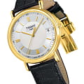Мужские золотые швейцарские часы Tissot T-Gold Carson T907.410.16.031.00, кварцевый механизм с высокой точностью. Сапфировое стекло устойчивое к появлению царапин, обладающее высокой прозрачностью. Класс водозащиты: 30 метров, позволит защитить корпус от случайных брызг или капель дождя. Корпус часов изготовлен из золота, золотистого цвета.