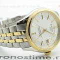 Светлый циферблат и безельБезельВнешний ободок, закрепляющий стекло. В спортивных часах так называется поворотное кольцо с делениями на циферблате, выполняет роль таймера – замеряет отрезки времени на шкале. Неподвижный безель – элемент декора. Однонаправленно вращающийся безель на дайверских часах позволяет фиксировать моменты погружения и выныривания на поверхность. дополнены лаконичным узором, классическая модель будет уместна в любой ситуации. Внутри корпуса из долговечной нержавеющей стали 316L находится автоматический калибр Powermatic 80Powermatic 80Эксклюзивный калибр от швейцарской компании ETA с увеличенным запасом хода до 80 часов за счёт удлинённой заводной пружины. Характеризуется улучшенной системой спуска со сниженным трением. с 80-часовым запасом хода, благодаря его безупречной точности часы отмечены сертификатом COSCСертификат COSCОфициальный сертификат, подтверждающий то, что часы ходят с особо высокой точностью. Для получения документа часы подвергаются тестовым испытаниям, разработанным швейцарским институтом тестирования хронометров COSC. Допустимая норма для механических часов -4/+6 секунд в день, для кварцевых моделей +/- 0,07 секунд в день.. Скелетонизированная задняя крышка. Надёжное стекло из сапфира. Золотистое PVD-покрытиеPVDУльтратонкое покрытие наносится в технике вакуумного напыления, сочетает в себе нитрид титана особой прочности со слоем золота или оксида хрома. Несёт в себе декоративную или защитную функцию. устойчиво к царапинам и истиранию. Водостойкость 50 метров. Апертура даты. . Габариты: 39 x 41 x 9,8 мм.