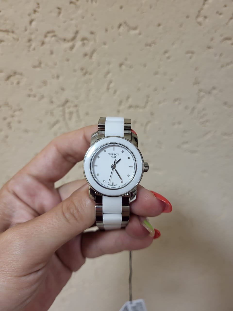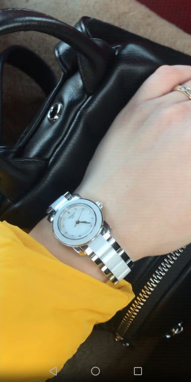 Модель в серебристо-белом оформлении станет изящным украшением к вечернему платью или классическому костюму. Для изготовления часов использовались современные материалы: хирургическая сталь и керамика, отличающаяся гипоаллергенными свойствами. Керамика принимает температурный режим тела человека и обеспечивает комфорт при ношении. Циферблат инкрустирован бриллиантами, имеющими законное происхождение. Кварцевый механизм ETA F03.111. Функция EOLEOLПредставляет собой систему, уведомляющую владельца часов о необходимости замены элемента питания. За 2 недели до полного разряда батарейки секундная стрелка перестаёт ходить чётко и начинает перепрыгивать на 3-4 деления.. Габариты: 28 x 28 x 6,4 мм.