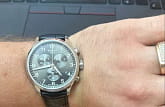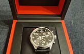 Модель сочетает в себе классические элементы и динамичные черты. Аксессуар относится к числу самых больших хронографов - диаметр корпуса составляет 45 мм. Элегантный ремешок выполнен из натуральной кожи, он надёжно крепится на руке, застёжка препятствует случайному расстёгиванию. Кварцевый механизм ETA G10.212. Сапфировое стекло. Водонепроницаемость до 10 бар. Габариты: 45 x 45 x 11 мм.