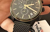 Прочный стальной корпус устойчив к появлению царапин и повреждений, часы сохранят первоначальный внешний вид на много лет благодаря золотому PVD-покрытиюPVDУльтратонкое покрытие наносится в технике вакуумного напыления, сочетает в себе нитрид титана особой прочности со слоем золота или оксида хрома. Несёт в себе декоративную или защитную функцию.. Браслет миланского плетения дополнен ювелирной застежкой с фиксатором. Сапфировое стекло. Водонепроницаемость до 10 бар. Функции: хронографХронографФункция позволяет измерять отрезки времени с особой точностью: часы, минуты, секунды. Верным признаком хронографа является наличие на циферблате 3 дополнительных окошек-счётчиков., секундомер, календарь. Габариты: 41 x 41 x 10,7 мм.