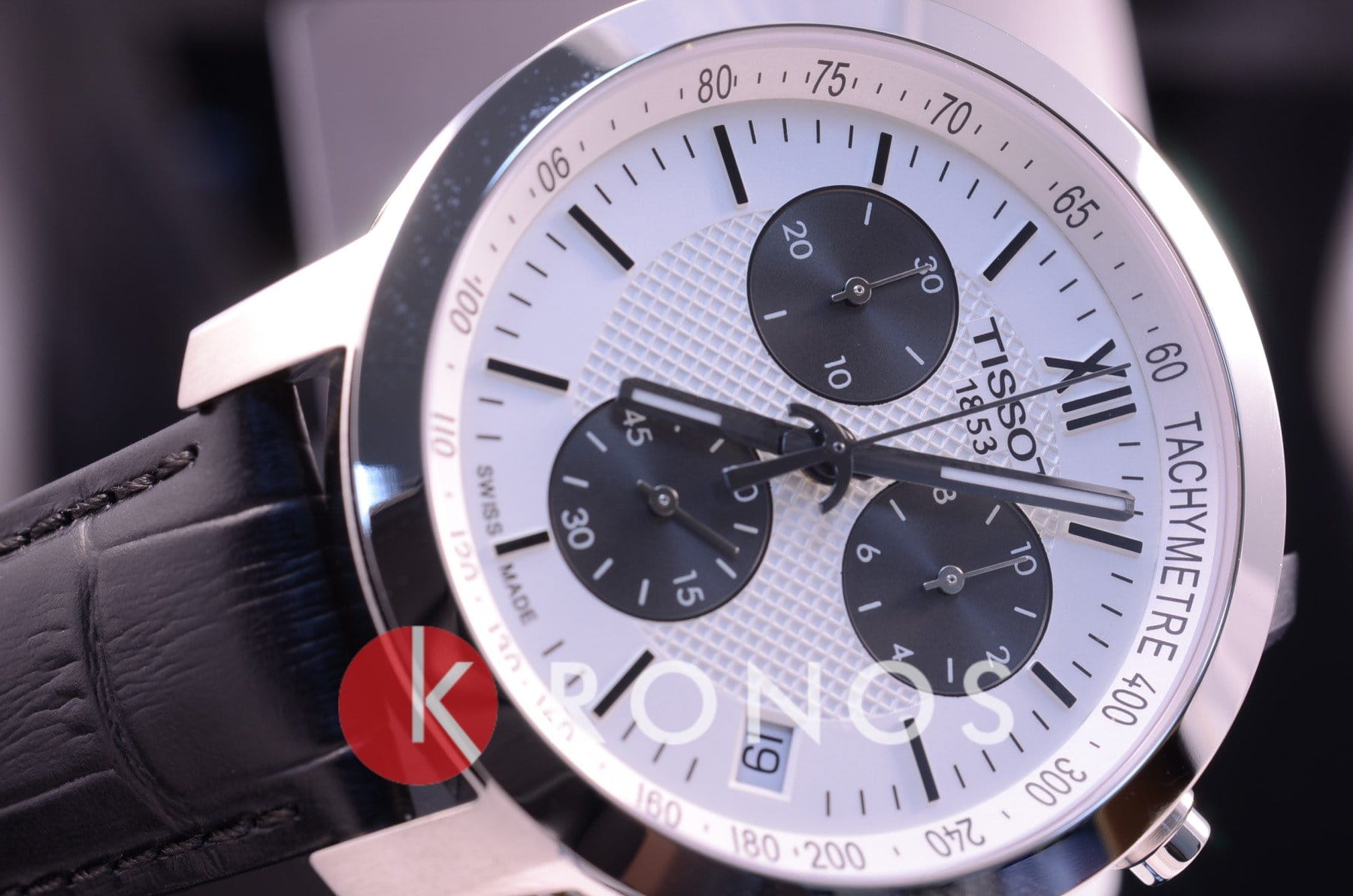 Модель сочетает в себе белый, чёрный, серебристый цвет, подобное исполнение позволяет носить их даже с одеждой самых смелых оттенков. Секундная стрелка выполнена в виде шпаги, необычный узор украшает массивный циферблат с дополнительными счётчиками хронографаХронографФункция позволяет измерять отрезки времени с особой точностью: часы, минуты, секунды. Верным признаком хронографа является наличие на циферблате 3 дополнительных окошек-счётчиков.. Кварцевый калибр ETA G10.211 с 4 камнями. Ремешок из натуральной кожи с тиснением под кожу крокодила. Стальной ударопрочный корпус. Хронограф, тахиметрТахиметрРазмеченная шкала, располагается на ободке или безеле часов. Тахиметр позволяет рассчитать скорость на определённом участке пути, расстояние измеряется в километрах или милях., секундомер, дата. Габариты: 41 x 42 x 12 мм.