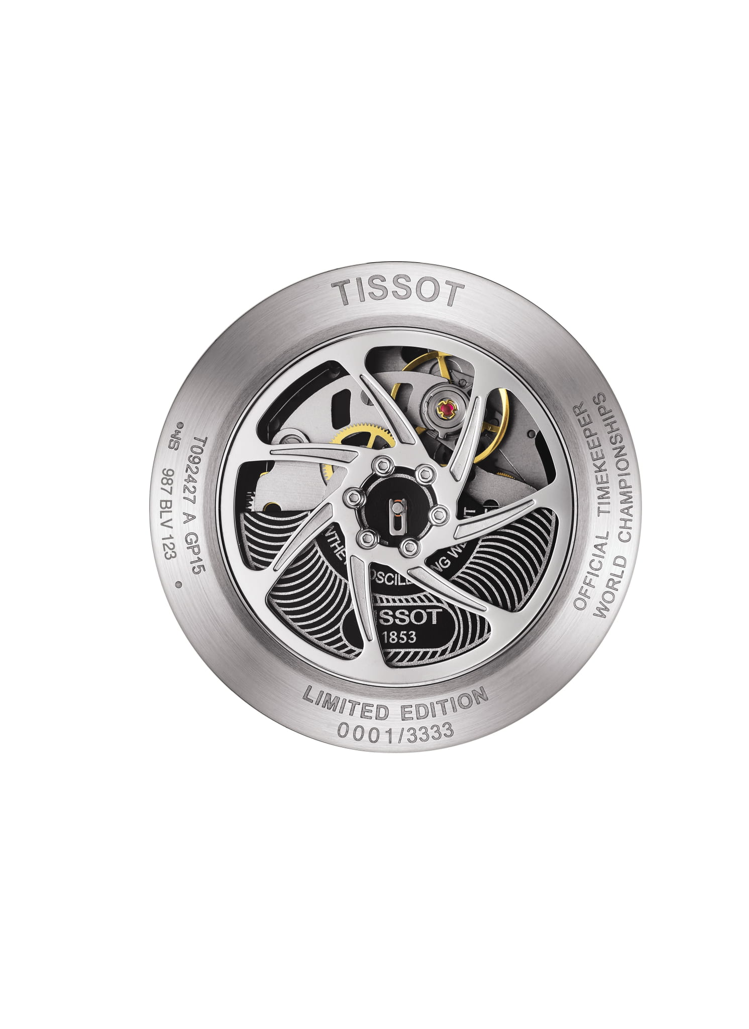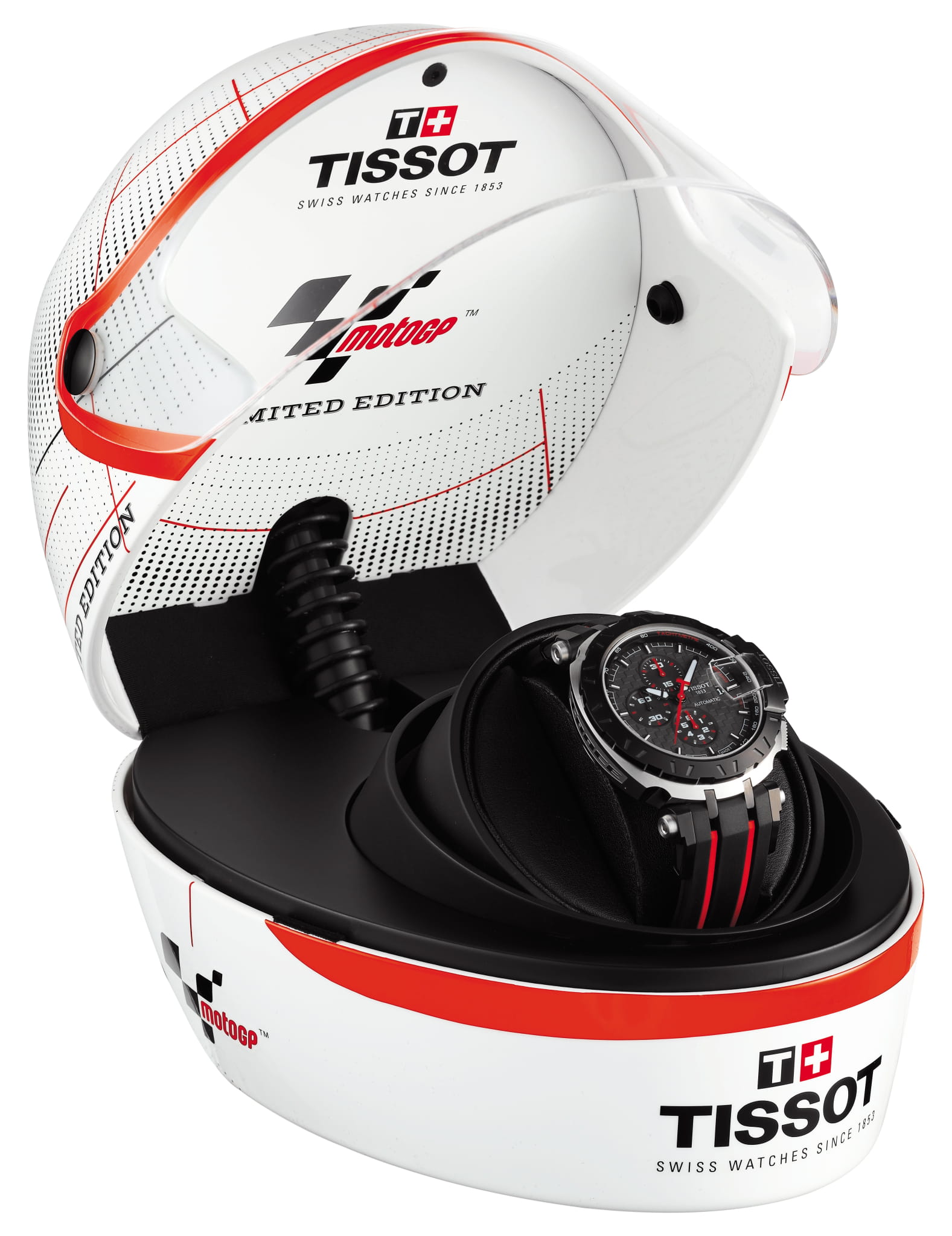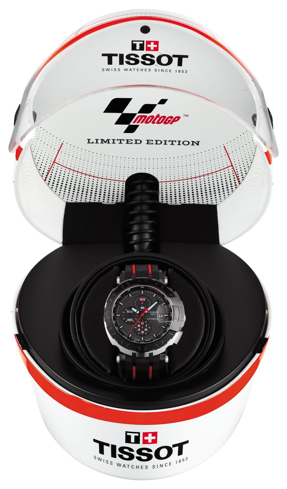 TISSOT T0924272706100 - мужские механические наручные часы Корпус этих часов крупного размера (45 мм) и выполнен из нержавеющей стали L316 Модель T0924272706100 имеет устойчивое к царапинам сапфировое стекло, ремешок из натурального каучука черного цвета, черный циферблат Калибр механизма: ETA G10211 Класс водозащиты: 100 м / 10 АТМ (разрешается плавание и ныряние без акваланга) Дополнительные функции и особенности: отображение числа, хронограф (секундомер) Ограниченная серия MotoGP Limited Edition Полная заводская комплектация TISSOT: оригинальные часы, фирменная коробка, инструкция, сервисная книжка, роман о часовой фабрике, миникаталог, замшевый фирменный чехол черного цвета для хранения и/или переноски часов, кассовый и товарный чеки Международная гарантия 2 года Производство и сборка: Швейцария