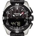 TISSOT T0914204605102 - мужские кварцевые наручные часы Корпус этих часов крупного размера (45 мм) и выполнен из титана металлического цвета Модель T0914204605102 имеет устойчивое к царапинам сапфировое стекло,тканевый ремешок, черный циферблат Калибр механизма: ETA E84301 Класс водозащиты: 100 м / 10 АТМ (разрешается плавание и ныряние без акваланга) Дополнительные функции и особенности: отображение числа, отображение дня недели, полностью автоматический календарь, второе время (GMT), будильник, хронограф (секундомер), таймер (обратный отсчет), яхт-таймер, барометр (атмосферное давление), альтиметр (высота над уровнем моря: зависит от показаний барометра), компас, индикатор запаса хода, сенсорный дисплей, питание от солнечной энергии Полная заводская комплектация TISSOT: оригинальные часы, фирменная коробка, инструкция, сервисная книжка, роман о часовой фабрике, миникаталог, замшевый фирменный чехол черного цвета для хранения и/или переноски часов, кассовый и товарный чеки Международная гарантия 2 года Производство и сборка: Швейцария