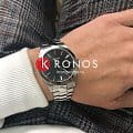 Стильный аксессуар в классическом стиле поможет всегда находиться на высоте. Минималистичный чёрный циферблат, дополненный серебристыми стрелками и часовыми метками, всегда будет актуальным. Часы работают благодаря кварцевому механизму ETA F06.115 с высокой точностью хода. Люминесцентная подсветкаЛюминесцентное покрытиеПозволяет считывать показания времени в темноте. Производители наносят на стрелки, часовые индексы, безель или поверхность циферблата светонакопительный состав, дающий холодное свечение.. Сапфировое стекло препятствует появлению царапин. Водонепроницаемость до 10 бар. Отображение даты, EOLEOLПредставляет собой систему, уведомляющую владельца часов о необходимости замены элемента питания. За 2 недели до полного разряда батарейки секундная стрелка перестаёт ходить чётко и начинает перепрыгивать на 3-4 деления.. Габариты: 40 x 40 x 8,52 мм.