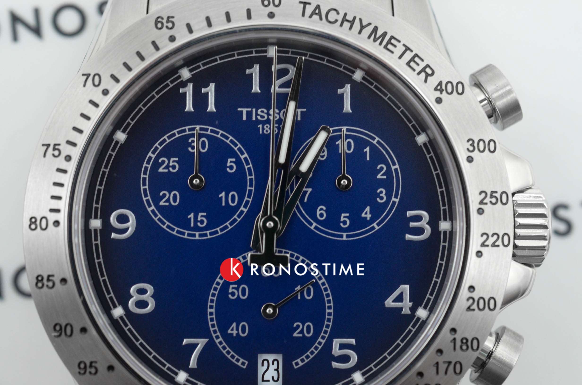 Сдержанный тёмно-синий циферблат со счётчиками хронографаХронографФункция позволяет измерять отрезки времени с особой точностью: часы, минуты, секунды. Верным признаком хронографа является наличие на циферблате 3 дополнительных окошек-счётчиков. акцентирует всё внимание на себе. Стрелки имеют люминесцентную подсветкуЛюминесцентное покрытиеПозволяет считывать показания времени в темноте. Производители наносят на стрелки, часовые индексы, безель или поверхность циферблата светонакопительный состав, дающий холодное свечение., чтобы использование часов в темноте не вызывало затруднений. Привлекательный внешний вид. Кварцевый механизм ETA G10.212. Хирургическая сталь устойчива к повреждениям и ударам. Водозащита до 10 бар. . Секундомер, тахиметрТахиметрРазмеченная шкала, располагается на ободке или безеле часов. Тахиметр позволяет рассчитать скорость на определённом участке пути, расстояние измеряется в километрах или милях., календарь. Габариты: 42,5 x 42,5 x 11,2 мм.
