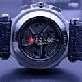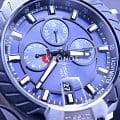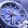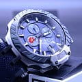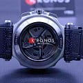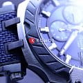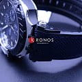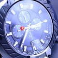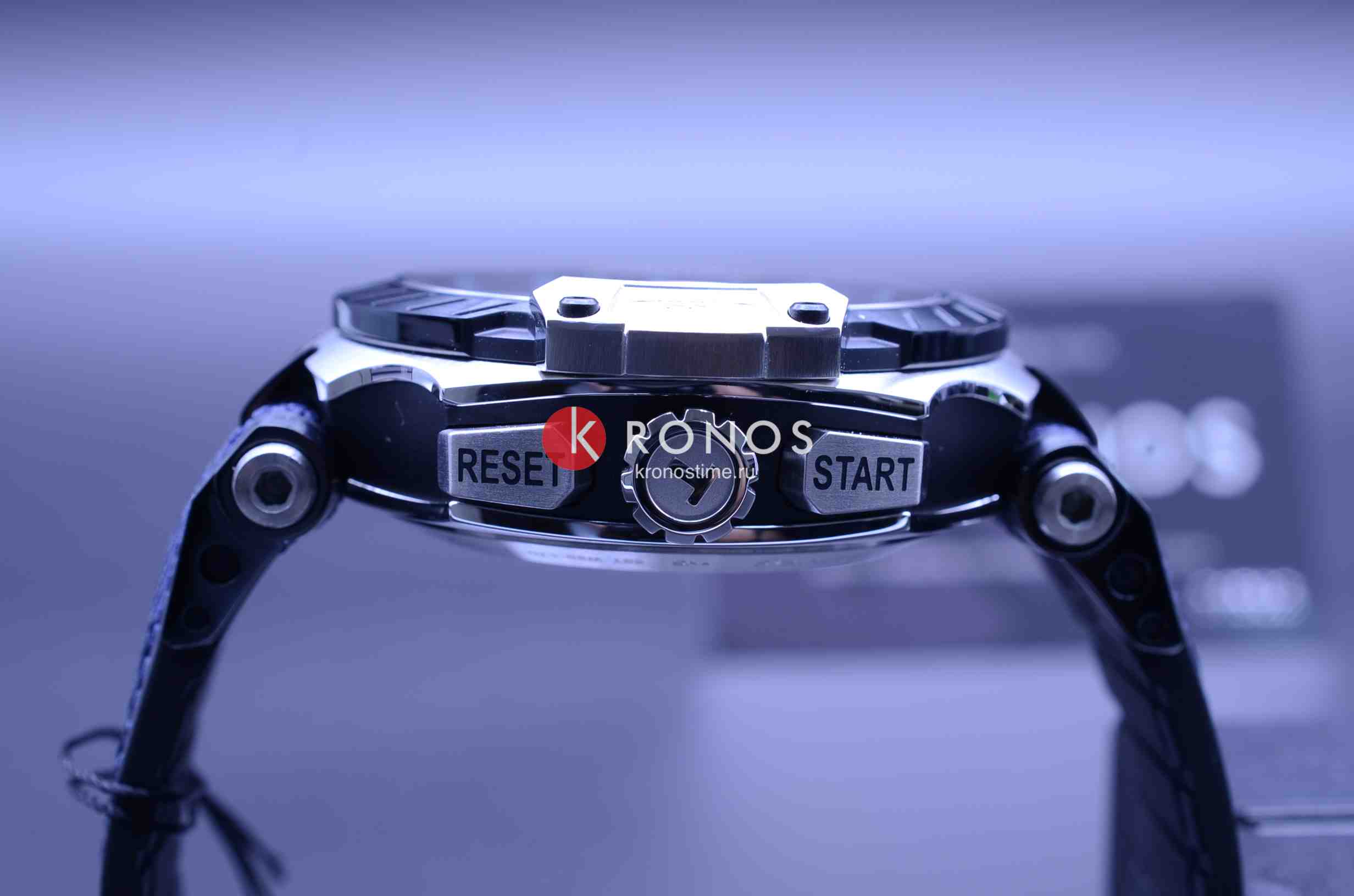 БезельБезельВнешний ободок, закрепляющий стекло. В спортивных часах так называется поворотное кольцо с делениями на циферблате, выполняет роль таймера – замеряет отрезки времени на шкале. Неподвижный безель – элемент декора. Однонаправленно вращающийся безель на дайверских часах позволяет фиксировать моменты погружения и выныривания на поверхность. выполнен в образе тормозного диска, чёрный цвет сочетается с синими переливами массивного циферблата со счётчиками хронографаХронографФункция позволяет измерять отрезки времени с особой точностью: часы, минуты, секунды. Верным признаком хронографа является наличие на циферблате 3 дополнительных окошек-счётчиков.. Задняя крышка сделана в виде колеса. Механические часы с автоподзаводом оснащены швейцарским механизмом C01.211, сохраняющим запас хода до 40 часов. Корпус из долговечной стали 316L с PVD-покрытиемPVDУльтратонкое покрытие наносится в технике вакуумного напыления, сочетает в себе нитрид титана особой прочности со слоем золота или оксида хрома. Несёт в себе декоративную или защитную функцию.. Ремешок из каучука и натуральной кожи. Секундомер, календарь, тахиметрТахиметрРазмеченная шкала, располагается на ободке или безеле часов. Тахиметр позволяет рассчитать скорость на определённом участке пути, расстояние измеряется в километрах или милях.. Габариты: 48,8 x 45 x 16,6 мм.
