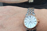 Модель высокого швейцарского качества отличается дизайном в стиле минимализм, лаконичное оформление придётся по вкусу каждому. Отличительной чертой стали удлинённые стрелки и оригинальный циферблат. Стальной браслет имеет PVD-покрытиеPVDУльтратонкое покрытие наносится в технике вакуумного напыления, сочетает в себе нитрид титана особой прочности со слоем золота или оксида хрома. Несёт в себе декоративную или защитную функцию. в цвете розового золота. Кварцевый механизм ETA F03.115. Сапфировое стекло. Водостойкость при давлении 5 бар. Календарь, функция EOLEOLПредставляет собой систему, уведомляющую владельца часов о необходимости замены элемента питания. За 2 недели до полного разряда батарейки секундная стрелка перестаёт ходить чётко и начинает перепрыгивать на 3-4 деления.. . Габариты: 30 x 30 x 6,7 мм.