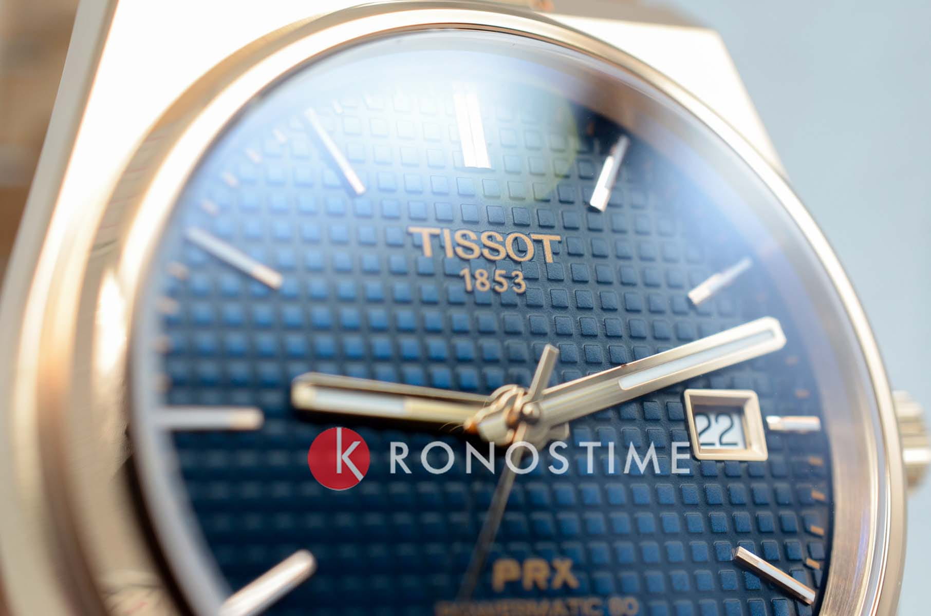 Tissot PRX Powermatic 80 T137.407.33.041.00 — современная и стильная интерпретация культового дизайна 70-х годов с акцентом на премиальную отделку и автоматическую механику. Корпус диаметром 40 мм выполнен из нержавеющей стали 316L с изысканным розовым PVD-покрытиемPVDУльтратонкое покрытие наносится в технике вакуумного напыления, сочетает в себе нитрид титана особой прочности со слоем золота или оксида хрома. Несёт в себе декоративную или защитную функцию.. Циферблат защищён сапфировым стекломСапфировое стеклоПрочный и надёжный материал из кристалла сапфира синтетического происхождения, характеризующийся особой твёрдостью и устойчивостью к царапинам и повреждениям. с антибликовым покрытиемАнтибликовое покрытиеСлой оксида металла в 0,13-0,3 микрон, благодаря которому стекло часов не бликует и не отражает свет. Антибликовое покрытие уменьшает отражение света в 10 раз, обеспечивая отличную читаемость показателей циферблата., обеспечивающим стойкость к царапинам и отличную читаемость. Тёмно-синий циферблат с текстурой «вафля» оформлен в фирменном стиле PRX и дополнен золотистыми стрелками и индексами с покрытием Super-LumiNova®Люминесцентное покрытиеПозволяет считывать показания времени в темноте. Производители наносят на стрелки, часовые индексы, безель или поверхность циферблата светонакопительный состав, дающий холодное свечение.. Окно даты расположено на позиции «3 часа». Внутри установлен автоматический механизм Powermatic 80 SiliciumPowermatic 80 SiliciumМеханизм обладает самой высокой точностью хода за всю историю Tissot. Дополняется уникальной кремниевой спиралью, минимизирующей воздействие магнитных полей и перепада температур. Сохраняется запас хода до 80 часов благодаря удлиненной заводной пружине и снижению трения в системе спуска. с запасом хода до 80 часов и спиралью из антимагнитного сплава Nivachron™Nivachron™Специально разработанный инновационный сплав Nivachron™ повышает устойчивость часов к воздействию магнитных полей.. Модель укомплектована интегрированным браслетом с розовым PVD-покрытиемPVDУльтратонкое покрытие наносится в технике вакуумного напыления, сочетает в себе нитрид титана особой прочности со слоем золота или оксида хрома. Несёт в себе декоративную или защитную функцию. и застёжкой 'бабочка'Застёжка "бабочка"Такой вид застёжки дополняется предохранителями, помогающими избежать случайного раскрытия браслета. Обладают изящным исполнением. , снабжённой кнопками и системой быстрой замены. Водонепроницаемость 100 метров делает эту модель практичным выбором для повседневной жизни и выходов в свет. PRX T137.407.33.041.00 — баланс технического совершенства и эстетической утончённости.