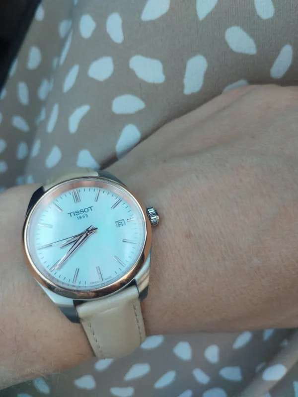 Женские швейцарские часы Tissot PR 100 T150.210.26.111.00, кварцевый механизм с высокой точностью. Сапфировое стеклоСапфировое стеклоПрочный и надёжный материал из кристалла сапфира синтетического происхождения, характеризующийся особой твёрдостью и устойчивостью к царапинам и повреждениям. устойчивое к появлению царапин, обладающее высокой прозрачностью. Корпус часов изготовлен из нержавеющей стали 316L. Стрелки с люминесцентным покрытиемЛюминесцентное покрытиеПозволяет считывать показания времени в темноте. Производители наносят на стрелки, часовые индексы, безель или поверхность циферблата светонакопительный состав, дающий холодное свечение.. Окошко даты в положении 3 часов. Класс водозащиты: 100 метров, позволит плавать, нырять и заниматься другими водными видами спорта. Практичный кожаный ремешок на стандартной застёжке. БезельБезельВнешний ободок, закрепляющий стекло. В спортивных часах так называется поворотное кольцо с делениями на циферблате, выполняет роль таймера – замеряет отрезки времени на шкале. Неподвижный безель – элемент декора. Однонаправленно вращающийся безель на дайверских часах позволяет фиксировать моменты погружения и выныривания на поверхность. с PVD-покрытиемPVDУльтратонкое покрытие наносится в технике вакуумного напыления, сочетает в себе нитрид титана особой прочности со слоем золота или оксида хрома. Несёт в себе декоративную или защитную функцию..
