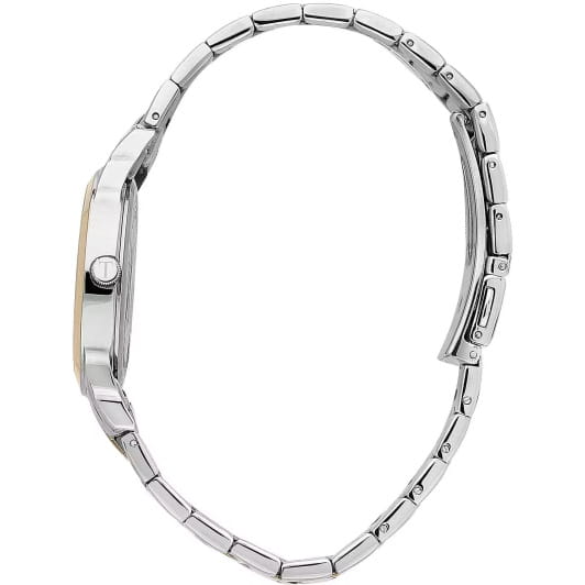Итальянские женские часы Trussardi T-Bent R2453141503 - это стильный женский аксессуар, который сочетает элегантный дизайн и практичность. Корпус выполнен из нержавеющей стали с безелемБезельВнешний ободок, закрепляющий стекло. В спортивных часах так называется поворотное кольцо с делениями на циферблате, выполняет роль таймера – замеряет отрезки времени на шкале. Неподвижный безель – элемент декора. Однонаправленно вращающийся безель на дайверских часах позволяет фиксировать моменты погружения и выныривания на поверхность. с IP-покрытиемIP-покрытиеМетод ионного напыления. Демонстрирует повышенную устойчивость к истиранию, окислению и химическим веществам. Под воздействием высокого давления и температуры около 1500°C молекулы металла надёжно соединяются с частицами корпуса часов. , что обеспечивает долговечность и утончённый внешний вид. Надежное минеральное стеклоМинеральное стеклоМинеральное стекло представляет собой искусственно выращенный минерал кварца. Такое стекло отличается особой устойчивостью к повреждениям и царапинам. Уступает по некоторым качествам сапфировому стеклу. защищает циферблат от царапин и обеспечивает долговечность. Модель оснащена кварцевым механизмом, обеспечивающим высокую точность хода. Браслет из нержавеющей стали с частичным IP-покрытиемIP-покрытиеМетод ионного напыления. Демонстрирует повышенную устойчивость к истиранию, окислению и химическим веществам. Под воздействием высокого давления и температуры около 1500°C молекулы металла надёжно соединяются с частицами корпуса часов. на раскладной застёжкеРаскладная застёжкаТакой тип застёжки используется только на браслетах из металла. Она никогда не раскрывается полностью, происходит разделение на 2 и более частей. Раскладывающая застёжка снизит вероятность потери часов к минимуму. обеспечивает комфортное ношение. Водозащита 50 метров позволит защитить корпус от случайных брызг или капель дождя. Эта модель – отличный выбор для тех, кто ищет сочетание стиля, качества и функциональности. Часы станут не только полезным аксессуаром, но и выразительным элементом вашего имиджа. В комплекте браслет.