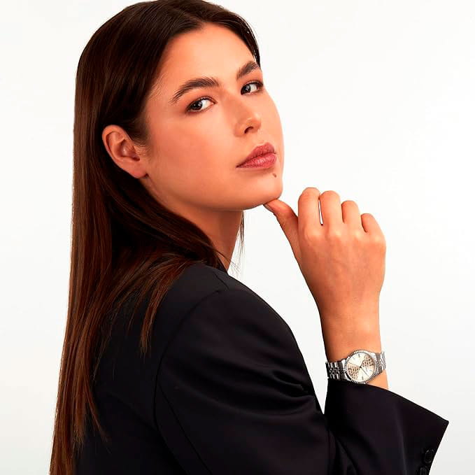 Итальянские женские часы Trussardi T-Bent R2453144512 - это стильный женский аксессуар, который сочетает элегантный дизайн и практичность. Корпус выполнен из нержавеющей стали, что обеспечивает долговечность и утончённый внешний вид. БезельБезельВнешний ободок, закрепляющий стекло. В спортивных часах так называется поворотное кольцо с делениями на циферблате, выполняет роль таймера – замеряет отрезки времени на шкале. Неподвижный безель – элемент декора. Однонаправленно вращающийся безель на дайверских часах позволяет фиксировать моменты погружения и выныривания на поверхность. с алмазной гранью. Надежное минеральное стеклоМинеральное стеклоМинеральное стекло представляет собой искусственно выращенный минерал кварца. Такое стекло отличается особой устойчивостью к повреждениям и царапинам. Уступает по некоторым качествам сапфировому стеклу. защищает циферблат от царапин и обеспечивает долговечность. Модель оснащена кварцевым механизмом, обеспечивающим высокую точность хода. Браслет из нержавеющей стали на раскладной застёжкеРаскладная застёжкаТакой тип застёжки используется только на браслетах из металла. Она никогда не раскрывается полностью, происходит разделение на 2 и более частей. Раскладывающая застёжка снизит вероятность потери часов к минимуму. обеспечивает комфортное ношение. Водозащита 50 метров позволит защитить корпус от случайных брызг или капель дождя. Эта модель – отличный выбор для тех, кто ищет сочетание стиля, качества и функциональности. Часы станут не только полезным аксессуаром, но и выразительным элементом вашего имиджа. В комплекте браслет.
