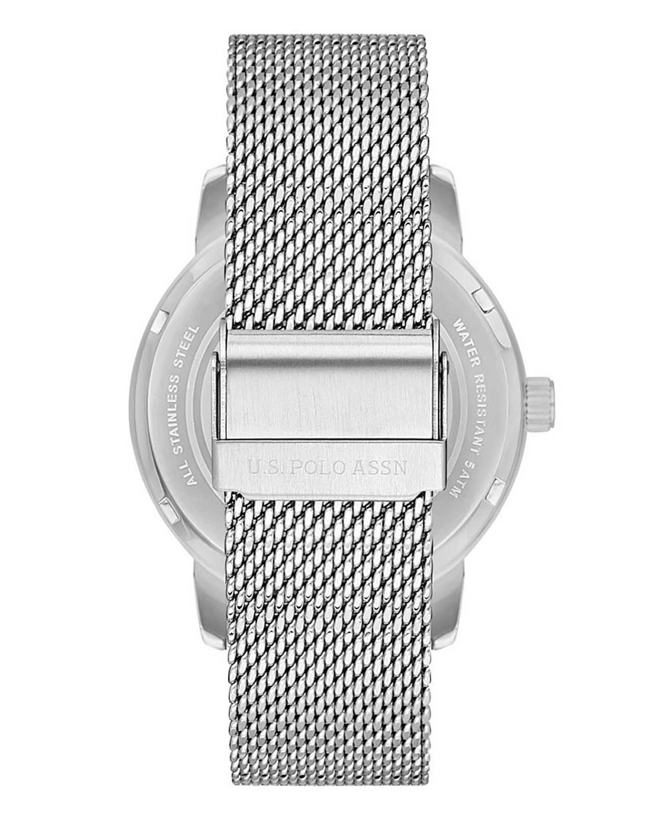 Мужские часы с тахиметромТахиметрРазмеченная шкала, располагается на ободке или безеле часов. Тахиметр позволяет рассчитать скорость на определённом участке пути, расстояние измеряется в километрах или милях. U.S. Polo Assn Fundamental USPA1075-01, кварцевый механизм с высокой точностью. Минеральное стеклоМинеральное стеклоМинеральное стекло представляет собой искусственно выращенный минерал кварца. Такое стекло отличается особой устойчивостью к повреждениям и царапинам. Уступает по некоторым качествам сапфировому стеклу. устойчивое к появлению царапин, обладающее высокой прозрачностью. Корпус изготовлен из нержавеющей стали. Центральные часовая, минутная и секундная стрелки. 24-х часовой формат времени, окошко даты и дня недели вынесены на отдельный циферблат. Стрелки с люминесцентным покрытиемЛюминесцентное покрытиеПозволяет считывать показания времени в темноте. Производители наносят на стрелки, часовые индексы, безель или поверхность циферблата светонакопительный состав, дающий холодное свечение.. Класс водозащиты: 50 метров, позволит защитить корпус от случайных брызг или капель дождя. Стальной браслет миланского плетения на раскладном замкеРаскладной замокДанный вариант застежки используется только на часах с металлическим браслетом. Отличительная особенность такого крепления в том, что длина браслета становится универсальной и вы можете самостоятельно отрегулировать нужный вам размер – застежка просто двигается по браслету часов..