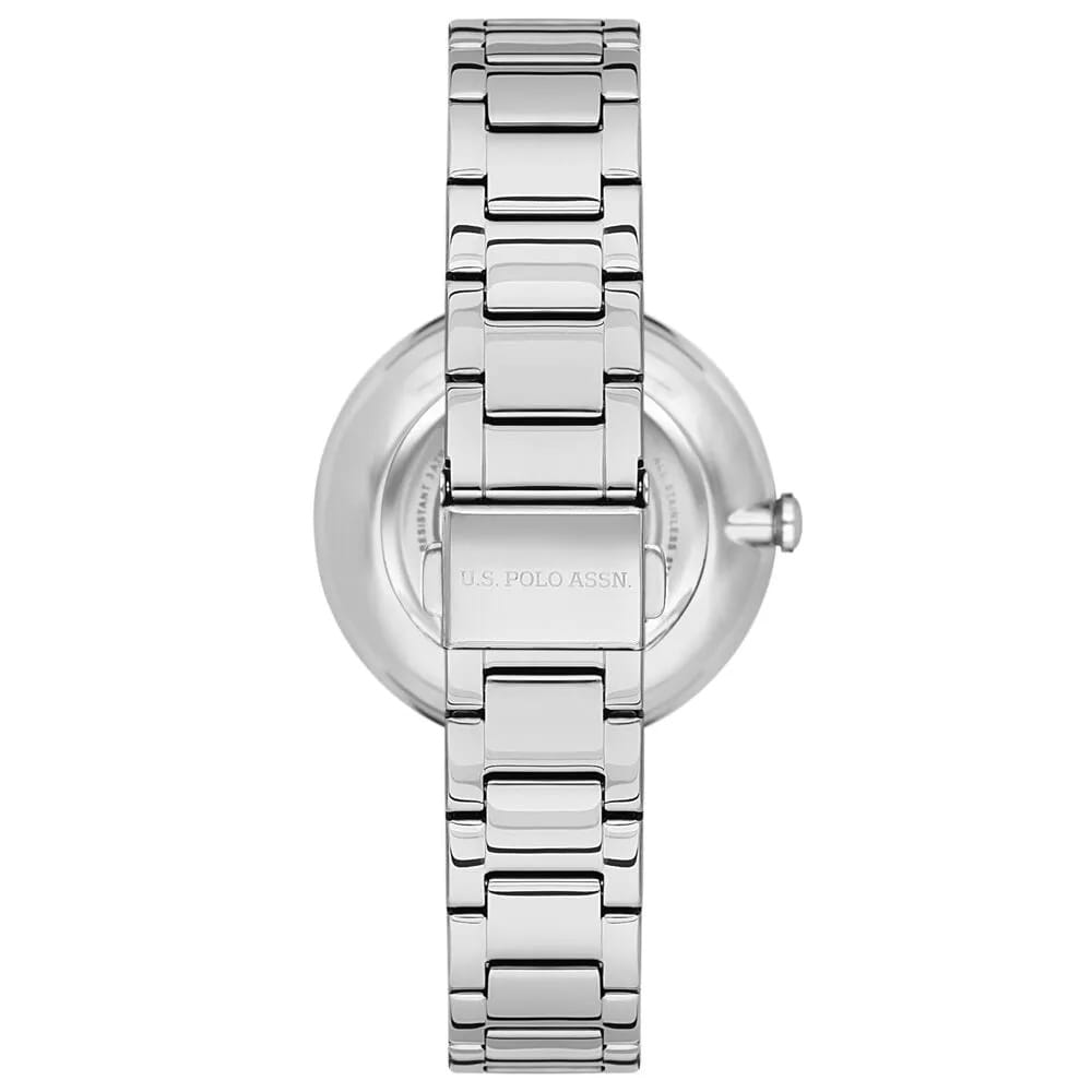 Женские элегантные часы U.S. Polo Assn. Stile USPA2015-02 кварцевый механизм с высокой точностью. Минеральное стеклоМинеральное стеклоМинеральное стекло представляет собой искусственно выращенный минерал кварца. Такое стекло отличается особой устойчивостью к повреждениям и царапинам. Уступает по некоторым качествам сапфировому стеклу. устойчивое к появлению царапин, обладающее высокой прозрачностью. Изысканный корпус изготовлен из нержавеющей стали. Лаконичные центральные часовая, минутная и секундная стрелки. Класс водозащиты: 30 метров, позволит защитить корпус от случайных брызг или капель дождя. Стальной браслет с раскладной застёжкойРаскладная застёжкаТакой тип застёжки используется только на браслетах из металла. Она никогда не раскрывается полностью, происходит разделение на 2 и более частей. Раскладывающая застёжка снизит вероятность потери часов к минимуму. обеспечивает комфорт и удобство в использовании, добавляя завершающий штрих к этому стильному аксессуару. Циферблат подчёркивает изысканный характер часов, создавая универсальный образ, подходящий как для повседневных ситуаций, так и для особых случаев.