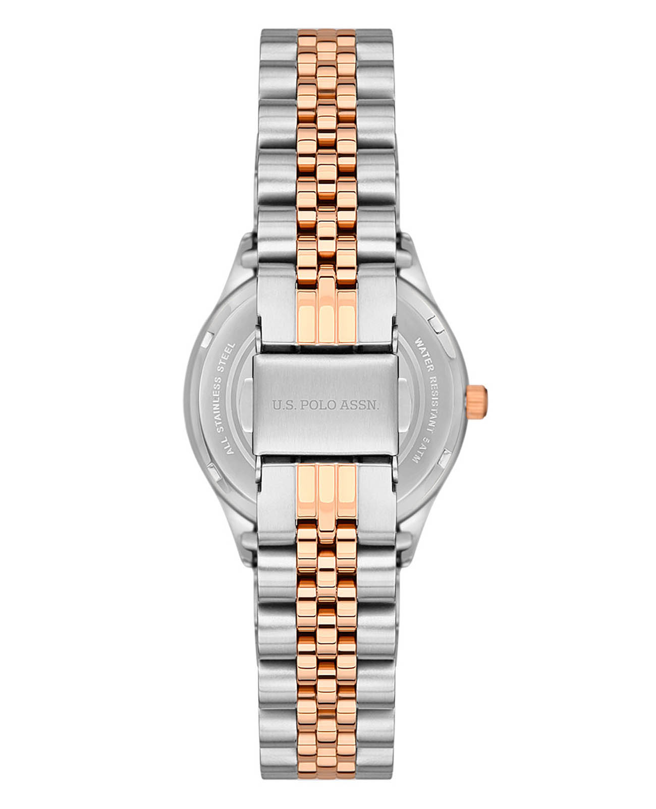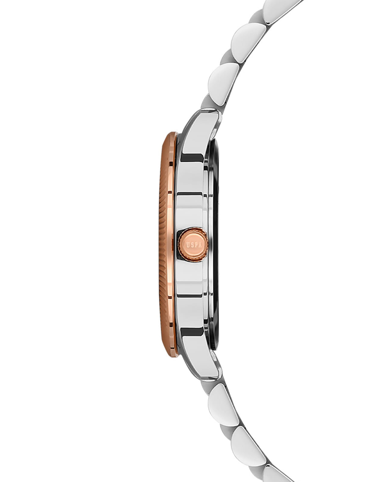 Женские часы U.S. Polo Assn Stile USPA2061-02, кварцевый механизм с высокой точностью. Минеральное стеклоМинеральное стеклоМинеральное стекло представляет собой искусственно выращенный минерал кварца. Такое стекло отличается особой устойчивостью к повреждениям и царапинам. Уступает по некоторым качествам сапфировому стеклу. устойчивое к появлению царапин, обладающее высокой прозрачностью. Корпус изготовлен из нержавеющей стали. БезельБезельВнешний ободок, закрепляющий стекло. В спортивных часах так называется поворотное кольцо с делениями на циферблате, выполняет роль таймера – замеряет отрезки времени на шкале. Неподвижный безель – элемент декора. Однонаправленно вращающийся безель на дайверских часах позволяет фиксировать моменты погружения и выныривания на поверхность. с IP-покрытиемIP-покрытиеМетод ионного напыления. Демонстрирует повышенную устойчивость к истиранию, окислению и химическим веществам. Под воздействием высокого давления и температуры около 1500°C молекулы металла надёжно соединяются с частицами корпуса часов.. Класс водозащиты: 50 метров, позволит защитить корпус от случайных брызг или капель дождя. Стальной браслет с частичным IP-покрытиемIP-покрытиеМетод ионного напыления. Демонстрирует повышенную устойчивость к истиранию, окислению и химическим веществам. Под воздействием высокого давления и температуры около 1500°C молекулы металла надёжно соединяются с частицами корпуса часов. на раскладной застёжкеРаскладная застёжкаТакой тип застёжки используется только на браслетах из металла. Она никогда не раскрывается полностью, происходит разделение на 2 и более частей. Раскладывающая застёжка снизит вероятность потери часов к минимуму..