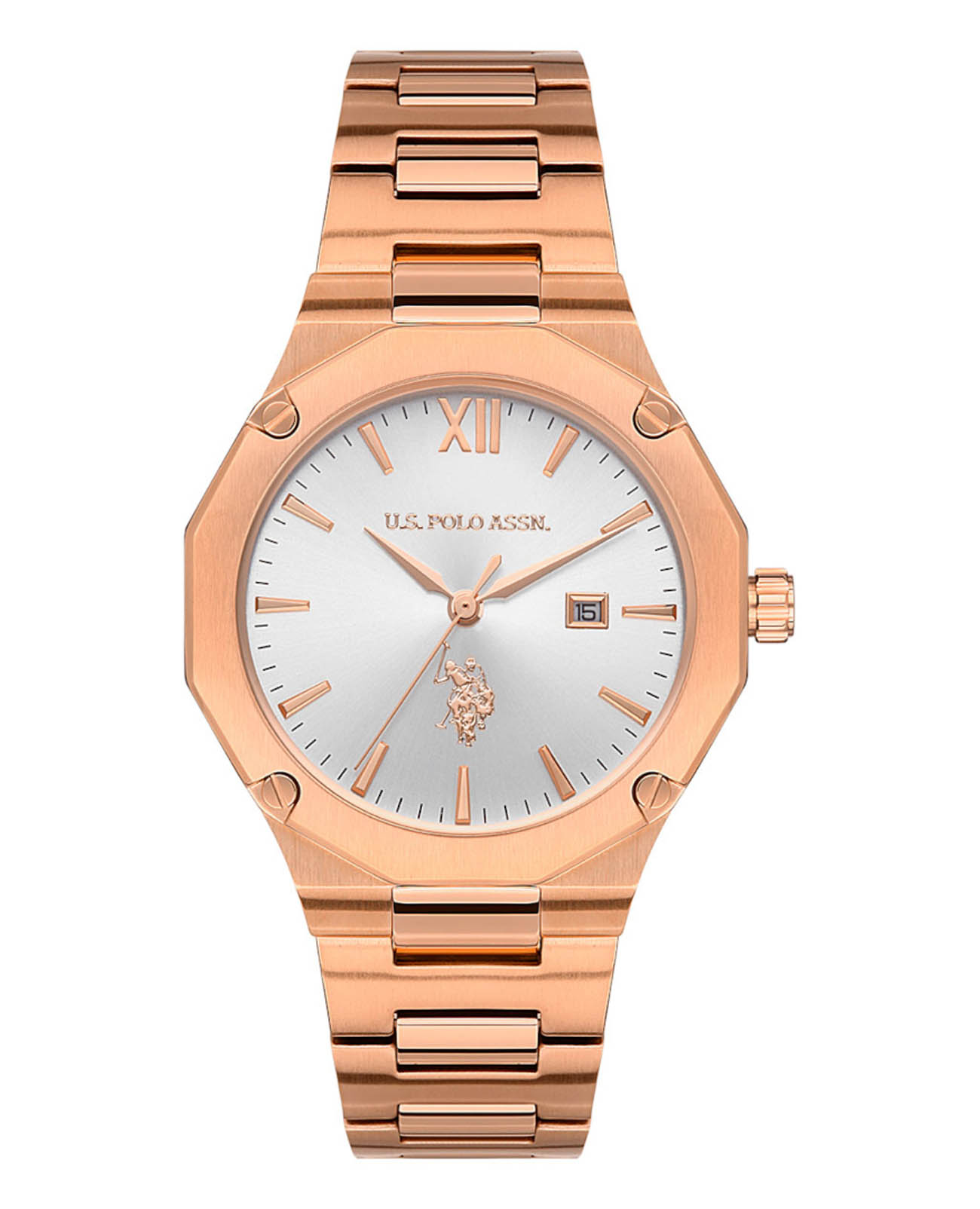 Женские часы U.S. Polo Assn Stile USPA2063-03, кварцевый механизм с высокой точностью. Минеральное стеклоМинеральное стеклоМинеральное стекло представляет собой искусственно выращенный минерал кварца. Такое стекло отличается особой устойчивостью к повреждениям и царапинам. Уступает по некоторым качествам сапфировому стеклу. устойчивое к появлению царапин, обладающее высокой прозрачностью. Корпус изготовлен из нержавеющей стали с IP-покрытиемIP-покрытиеМетод ионного напыления. Демонстрирует повышенную устойчивость к истиранию, окислению и химическим веществам. Под воздействием высокого давления и температуры около 1500°C молекулы металла надёжно соединяются с частицами корпуса часов.. Окошко даты в положении 3 часа. Класс водозащиты: 50 метров, позволит защитить корпус от случайных брызг или капель дождя. Стальной браслет с IP-покрытиемIP-покрытиеМетод ионного напыления. Демонстрирует повышенную устойчивость к истиранию, окислению и химическим веществам. Под воздействием высокого давления и температуры около 1500°C молекулы металла надёжно соединяются с частицами корпуса часов. на застёжка «бабочка» с кнопкамиЗастёжка "бабочка"Такой вид застёжки дополняется предохранителями, помогающими избежать случайного раскрытия браслета. Обладают изящным исполнением. .