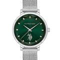 Женские часы U.S. Polo Assn. Stile USPA2079-06, кварцевый механизм с высокой точностью. Минеральное стеклоМинеральное стеклоМинеральное стекло представляет собой искусственно выращенный минерал кварца. Такое стекло отличается особой устойчивостью к повреждениям и царапинам. Уступает по некоторым качествам сапфировому стеклу. устойчивое к появлению царапин, обладающее высокой прозрачностью. Изысканный корпус изготовлен из нержавеющей стали. Лаконичные центральные часовая, минутная и секундная стрелки. Водонепроницаемость 5 АТМ позволяет использовать часы в повседневных условиях — при мытье рук или под лёгким дождём. Браслет выполнен в технике миланского плетения из стали и оснащён раскладным замкомРаскладная застёжкаТакой тип застёжки используется только на браслетах из металла. Она никогда не раскрывается полностью, происходит разделение на 2 и более частей. Раскладывающая застёжка снизит вероятность потери часов к минимуму., обеспечивающий комфорт и уверенную фиксацию на запястье, а также добавляя завершающий штрих к этому стильному аксессуару. Циферблат с кристаллами подчёркивает изысканный характер часов, создавая универсальный образ, подходящий как для повседневных ситуаций, так и для особых случаев.