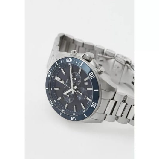 Модель Wainer WA.19540-C сочетает элегантность, функциональность и швейцарскую точность. Корпус диаметром 44 мм выполнен из нержавеющей стали 316L, обеспечивающей прочность и долговечность. БезельБезельВнешний ободок, закрепляющий стекло. В спортивных часах так называется поворотное кольцо с делениями на циферблате, выполняет роль таймера – замеряет отрезки времени на шкале. Неподвижный безель – элемент декора. Однонаправленно вращающийся безель на дайверских часах позволяет фиксировать моменты погружения и выныривания на поверхность. с PVD-покрытиемPVDУльтратонкое покрытие наносится в технике вакуумного напыления, сочетает в себе нитрид титана особой прочности со слоем золота или оксида хрома. Несёт в себе декоративную или защитную функцию.. Циферблат оформлен в современном стиле и оснащен хронографомХронографФункция позволяет измерять отрезки времени с особой точностью: часы, минуты, секунды. Верным признаком хронографа является наличие на циферблате 3 дополнительных окошек-счётчиков. для точного измерения времени, а сапфировое стеклоСапфировое стеклоПрочный и надёжный материал из кристалла сапфира синтетического происхождения, характеризующийся особой твёрдостью и устойчивостью к царапинам и повреждениям. защищает дисплей от царапин и механических повреждений. Часы работают на надежном кварцевом механизме Ronda RL-5030.D, обеспечивающем стабильную точность. Браслет из нержавеющей стали гарантирует удобную посадку на запястье. Водонепроницаемость до 100 метров делает модель подходящей для плавания и активного образа жизни. Wainer WA.19540-C — это стильный аксессуар для мужчин, ценящих швейцарское качество, современные технологии и утонченный дизайн.