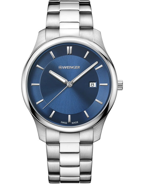 Мужские швейцарские часы с календарём Wenger 01.1441.117, кварцевый механизм с высокой точностью. Класс водозащиты: 30 метров, позволит защитить корпус от случайных брызг или капель дождя. Корпус часов изготовлен из стали, серебристого цвета.