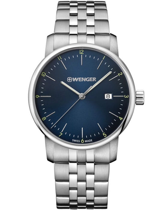 Швейцарские мужские часы в классическом стиле Wenger 01.1741.123, кварцевый механизм с высокой точностью. Класс водозащиты: 100 метров, позволит плавать, нырять и заниматься другими водными видами спорта. Корпус часов изготовлен из стали, серебристого цвета.