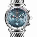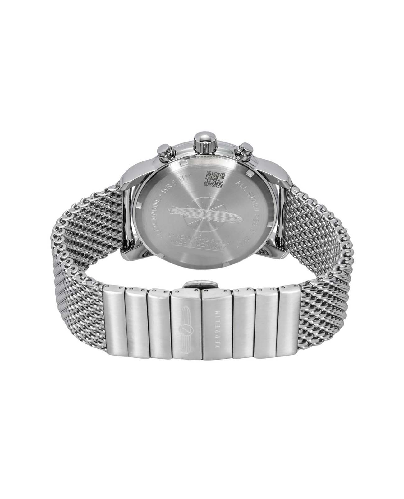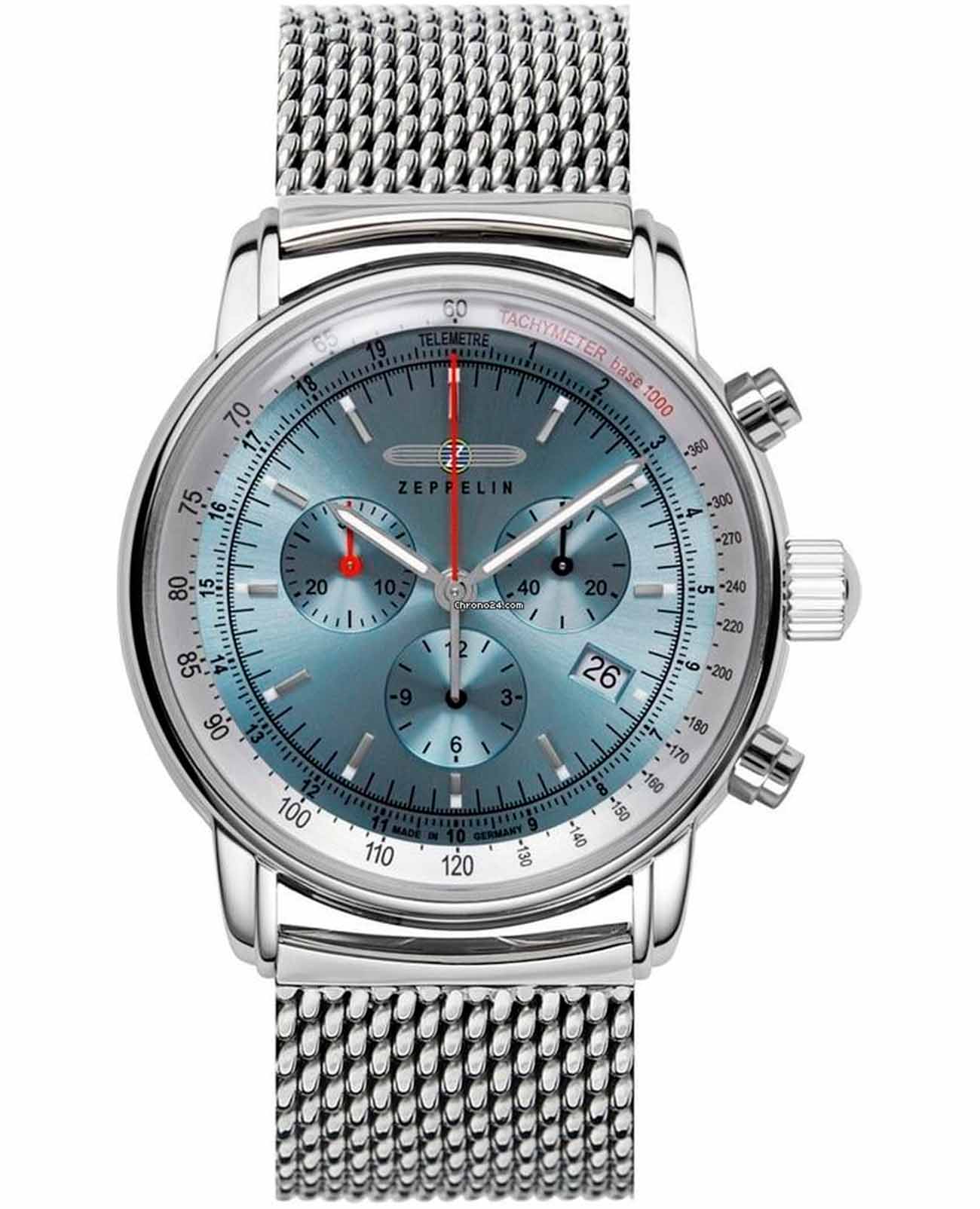 Мужские наручные часы-хронографХронографФункция позволяет измерять отрезки времени с особой точностью: часы, минуты, секунды. Верным признаком хронографа является наличие на циферблате 3 дополнительных окошек-счётчиков. Zeppelin 8886M3 из коллекции LZ14 Marine сочетают в себе классический дизайн и надежность современных технологий. Модель обладает круглым корпусом диаметром 42 мм, изготовленным из нержавеющей стали, что обеспечивает высокую устойчивость к внешним воздействиям. Браслет выполнен из нержавеющей стали на застёжке «бабочка» с кнопкамиЗастёжка "бабочка"Такой вид застёжки дополняется предохранителями, помогающими избежать случайного раскрытия браслета. Обладают изящным исполнением. , гарантирующей комфортное ношение и безопасность. Ледяной синий циферблат с серебристыми индексами оснащен малым циферблатом для малых секунд на «3 часах» и окном даты на «4 часах». Для защиты используется минеральное стеклоМинеральное стеклоМинеральное стекло представляет собой искусственно выращенный минерал кварца. Такое стекло отличается особой устойчивостью к повреждениям и царапинам. Уступает по некоторым качествам сапфировому стеклу., обеспечивающее прочную защиту от царапин. Часы работают на кварцевом механизме Ronda 5030.D швейцарского производства, что гарантирует точное время без необходимости подзаводки. Модель также является хронографом, оснащенным функцией секундомераСекундомерСекундоме́р — прибор, способный измерять интервалы времени с точностью до долей секунды. и тахиметрической шкалой, делая ее идеальной для активного образа жизни. Водонепроницаемость часов достигает 5 атмосфер (50 метров), что позволяет использовать их во время плавания на поверхности, однако не рекомендуется для глубоководного дайвинга или занятий водными видами спорта с высоким уровнем активности.